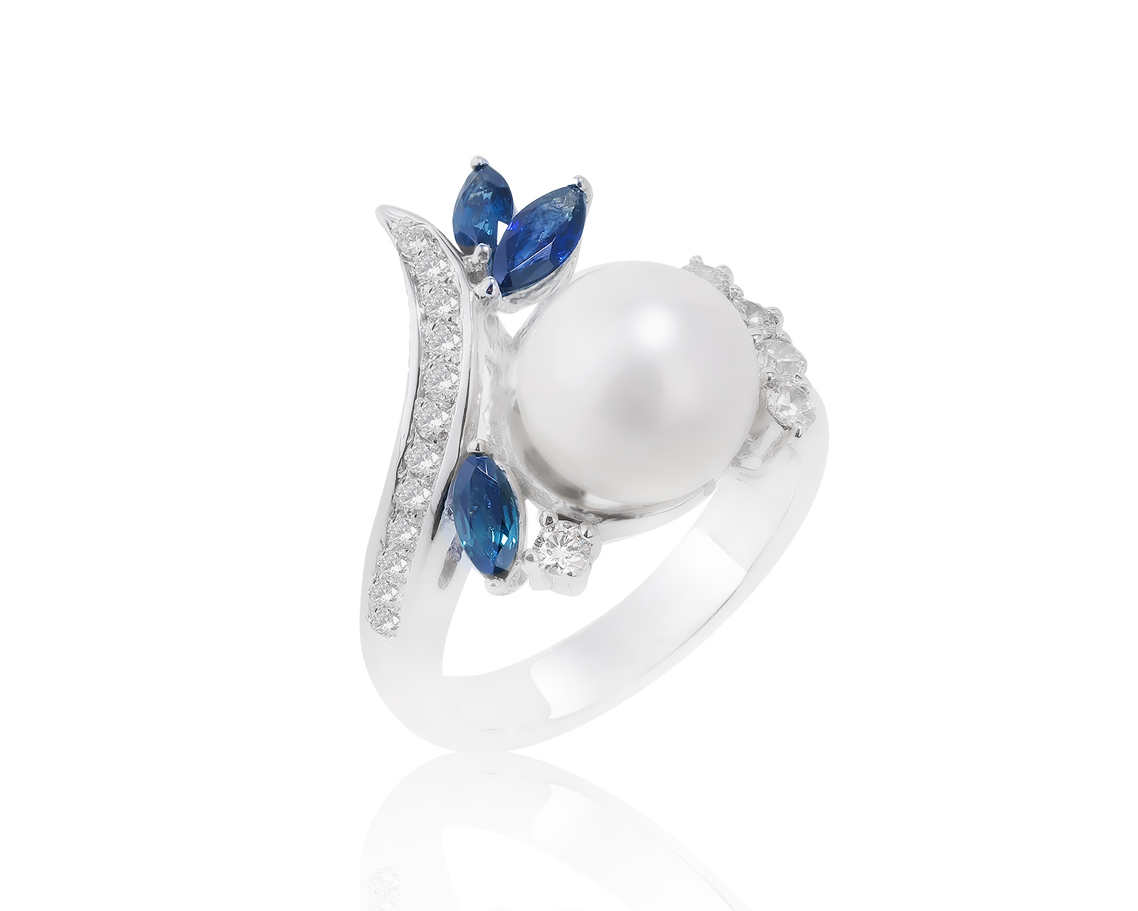 Оригинальное золотое кольцо с жемчугом и бриллиантами 3.14ct Roberto Bravo 030419/3