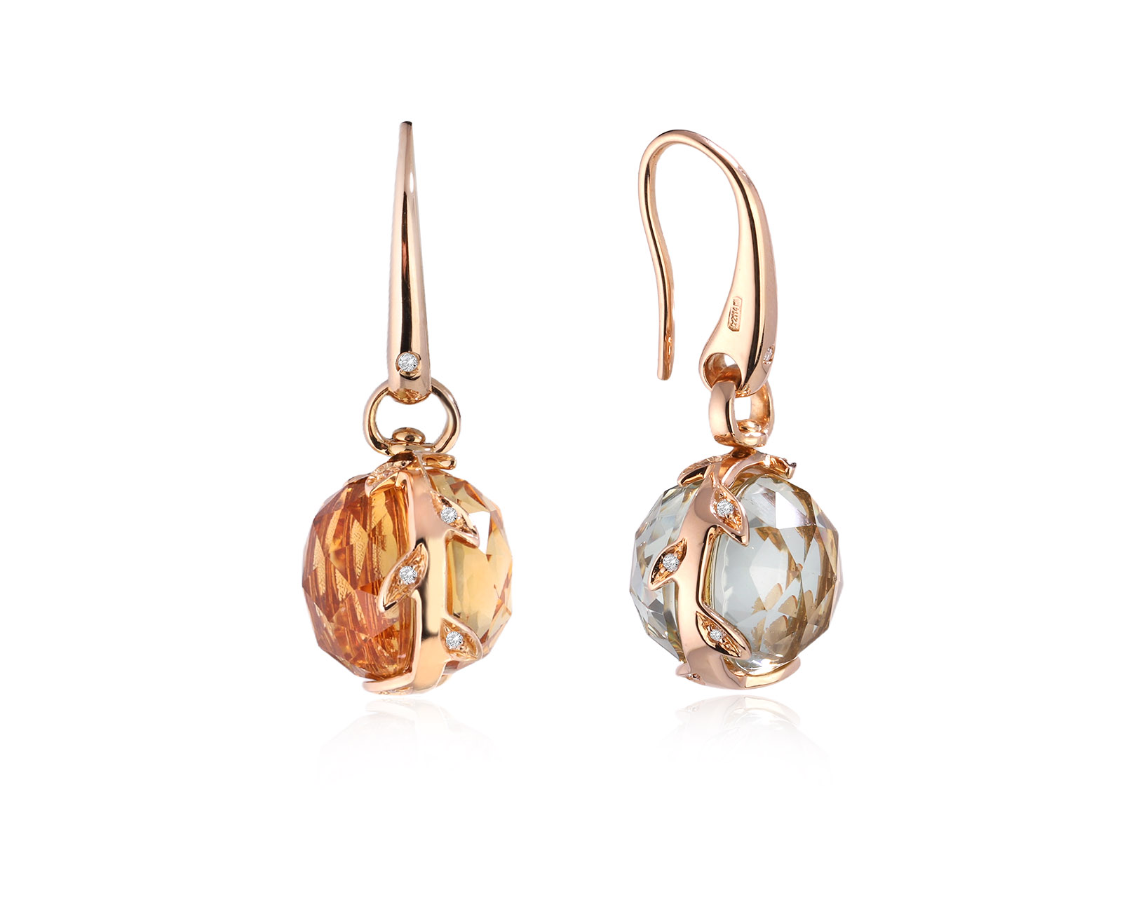 Оригинальные золотые серьги с цитринами 9.70ct и празиолитами 9.70ct Gavello 040226/3