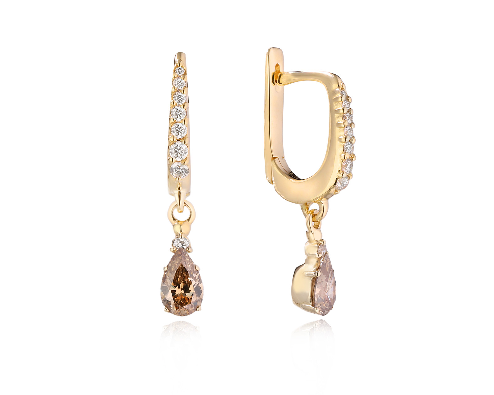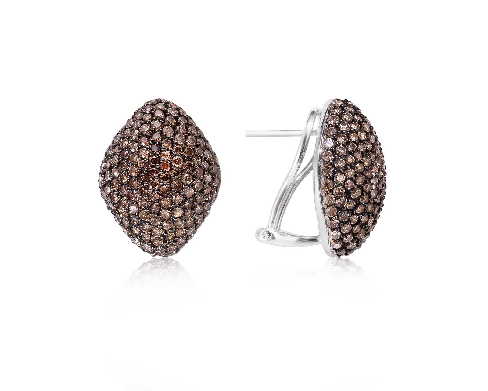 Золотые серьги с коньячными бриллиантами 3.52ct