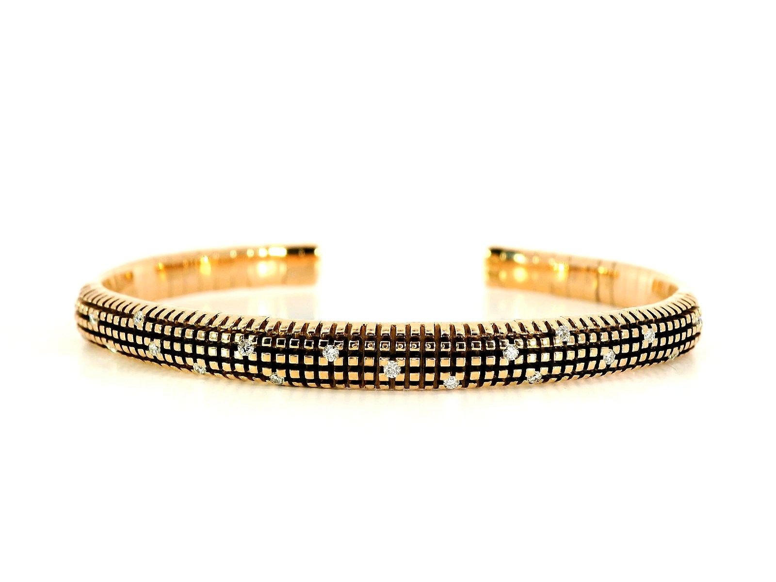 Стильный браслет Damiani из коллекции Metropolitan Dream — это гармония современного дизайна и утончённой роскоши. Выполненный из розового золота 750 пробы, он привлекает внимание тёплым оттенком металла и лаконичными формами. 18 бриллиантов круглой огранки общей массой 0.18ct создают деликатное сияние, аккуратно расставляя световые акценты. Благодаря продуманной конструкции браслет комфортно сидит на запястье и идеально подходит для повседневной носки, добавляя образу изысканность и стиль.