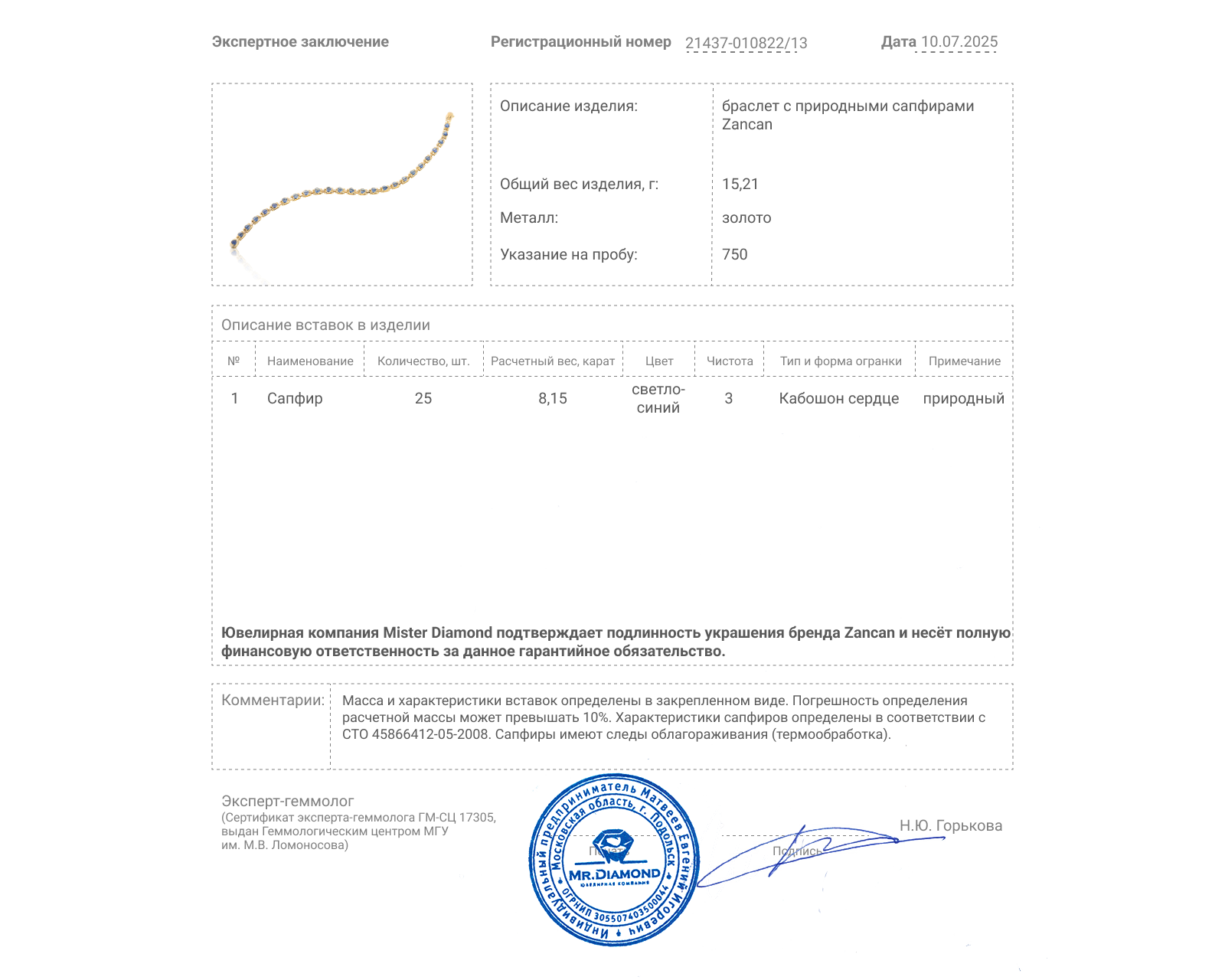 Представляем вашему вниманию оригинальный золотой браслет с сапфирами 8.15ct от всемирно известного бренда Zancan.