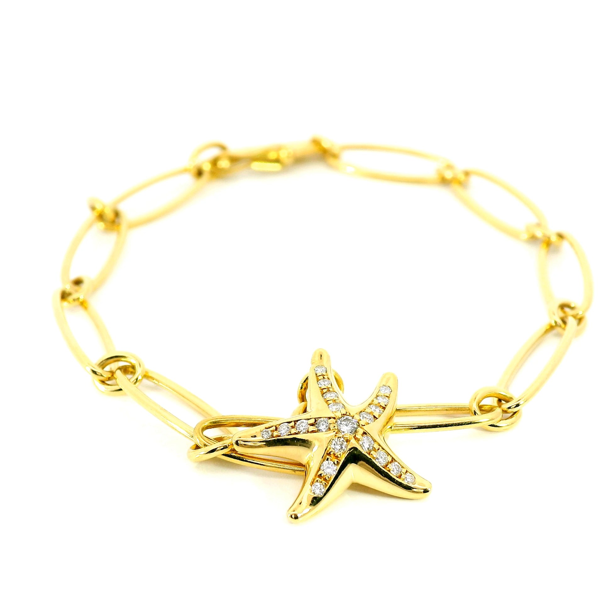 Представляем вашему вниманию оригинальный золотой браслет с бриллиантами 0.15ct от всемирно известного бренда Tiffany&Co из коллекции Elsa Peretti Starfish.