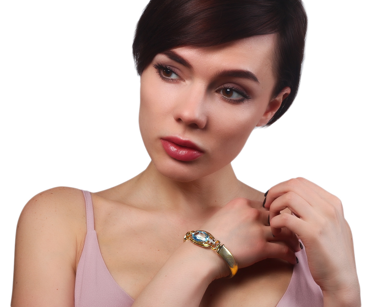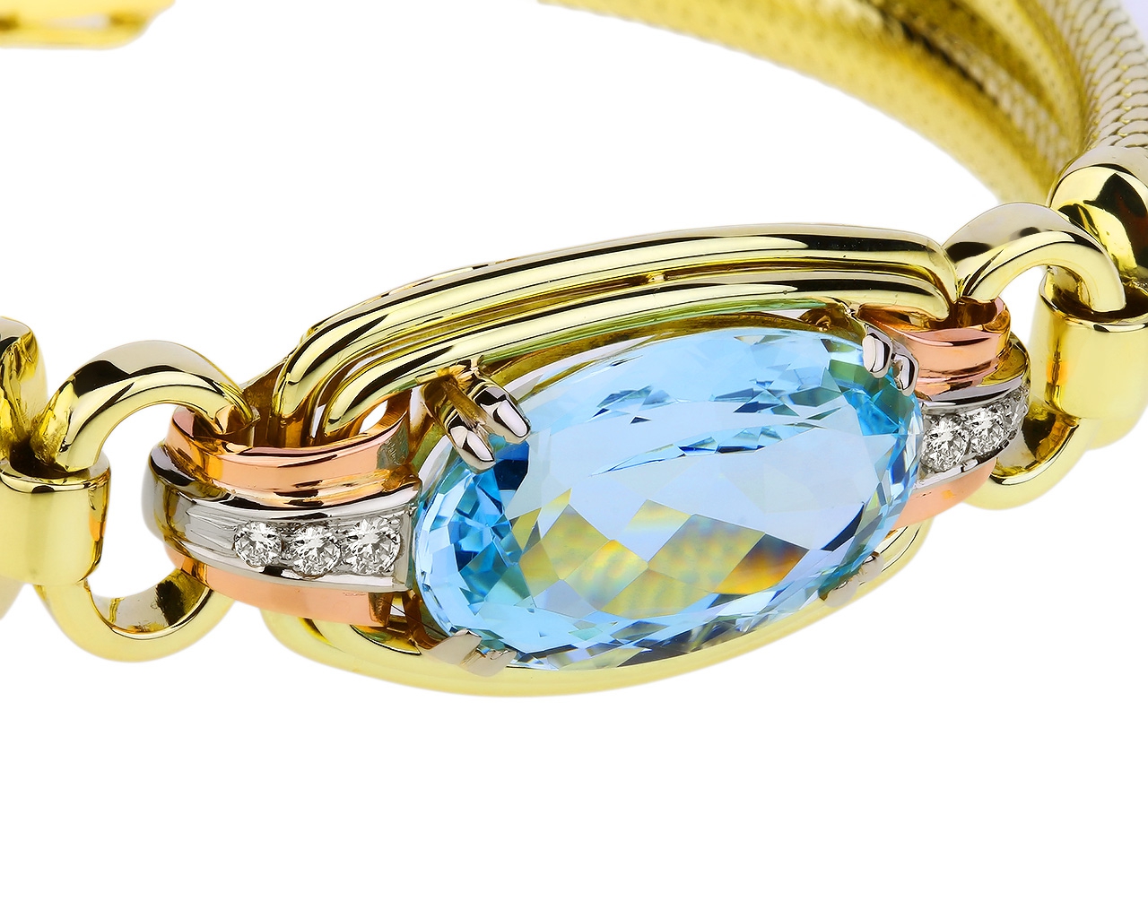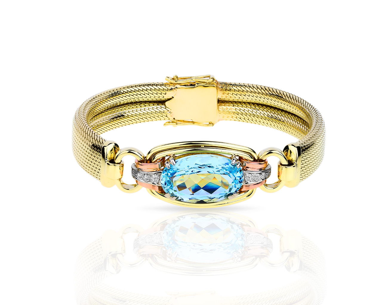 Представляем вашему вниманию волшебный золотой браслет с бриллиантами 0.16ct и аквамарином 11.14ct.