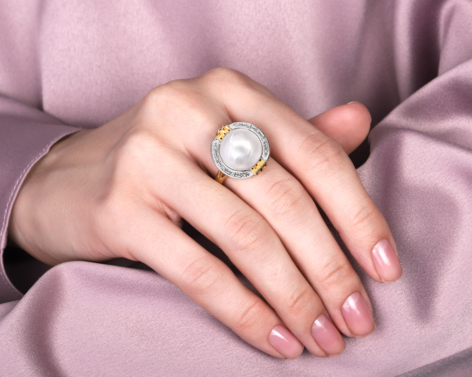 Золотое кольцо с перламутром 9.50ct и бриллиантами 0.05ct