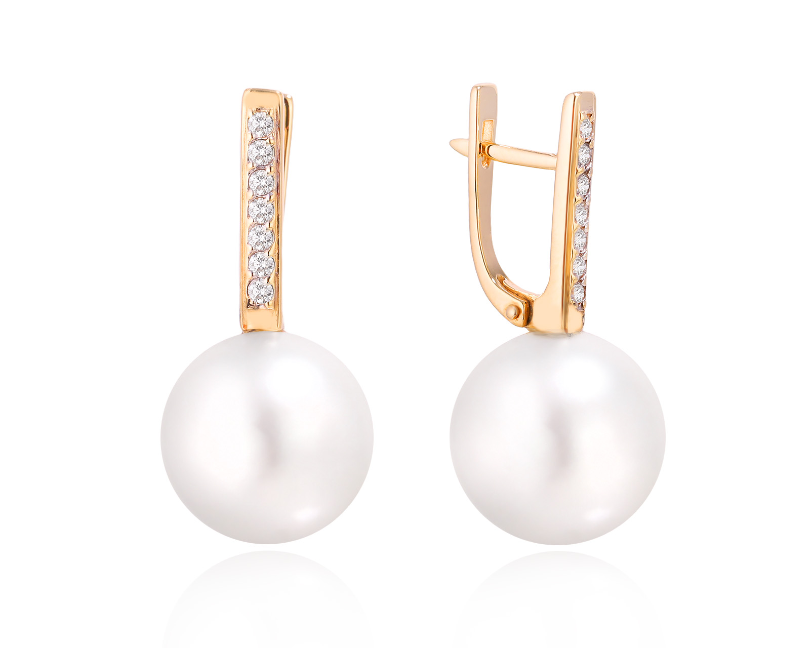 Романтичные золотые серьги с жемчугом 10.00 мм 111021/6