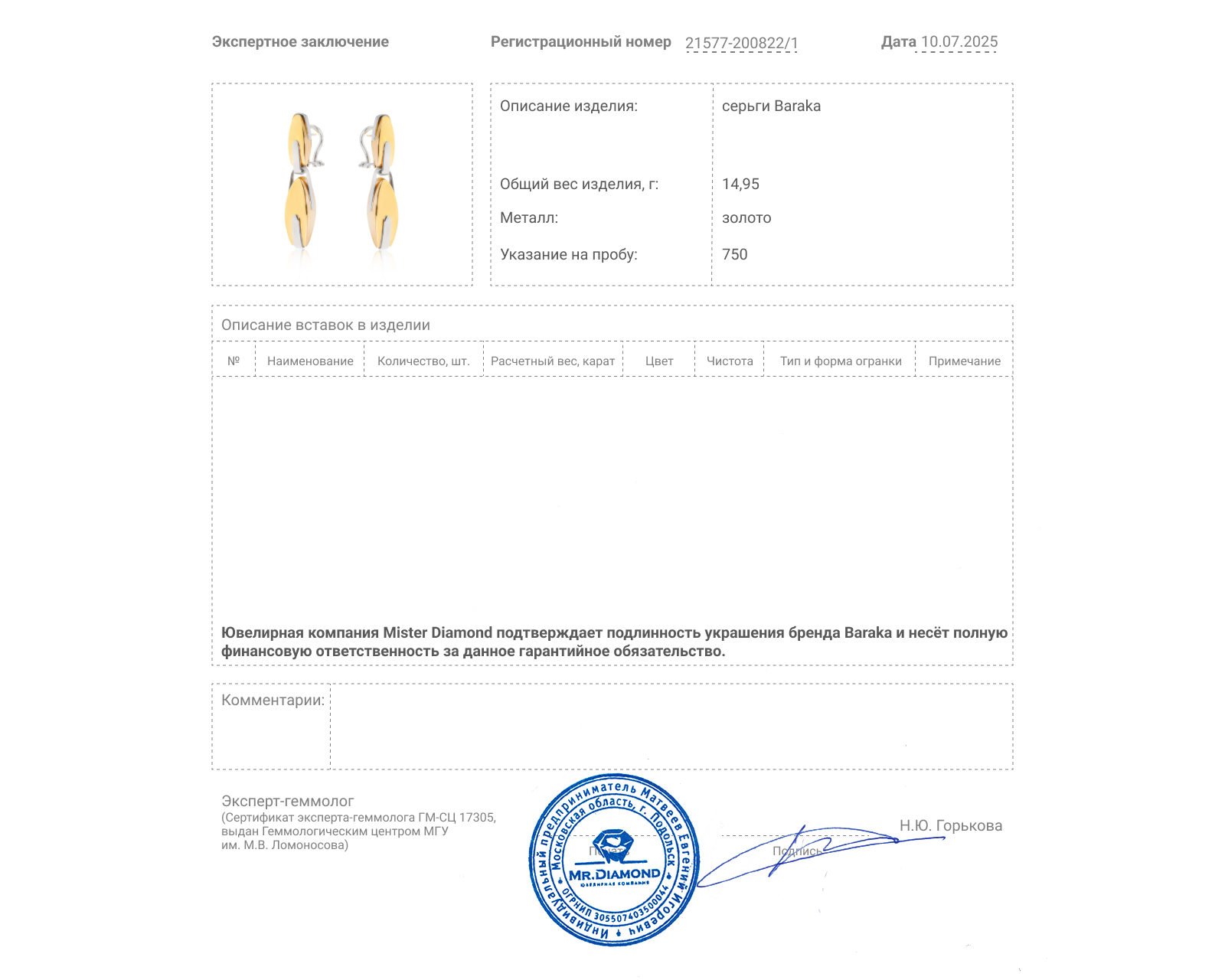 Представляем вашему вниманию оригинальные золотые серьги от всемирно известного бренда Baraka.
