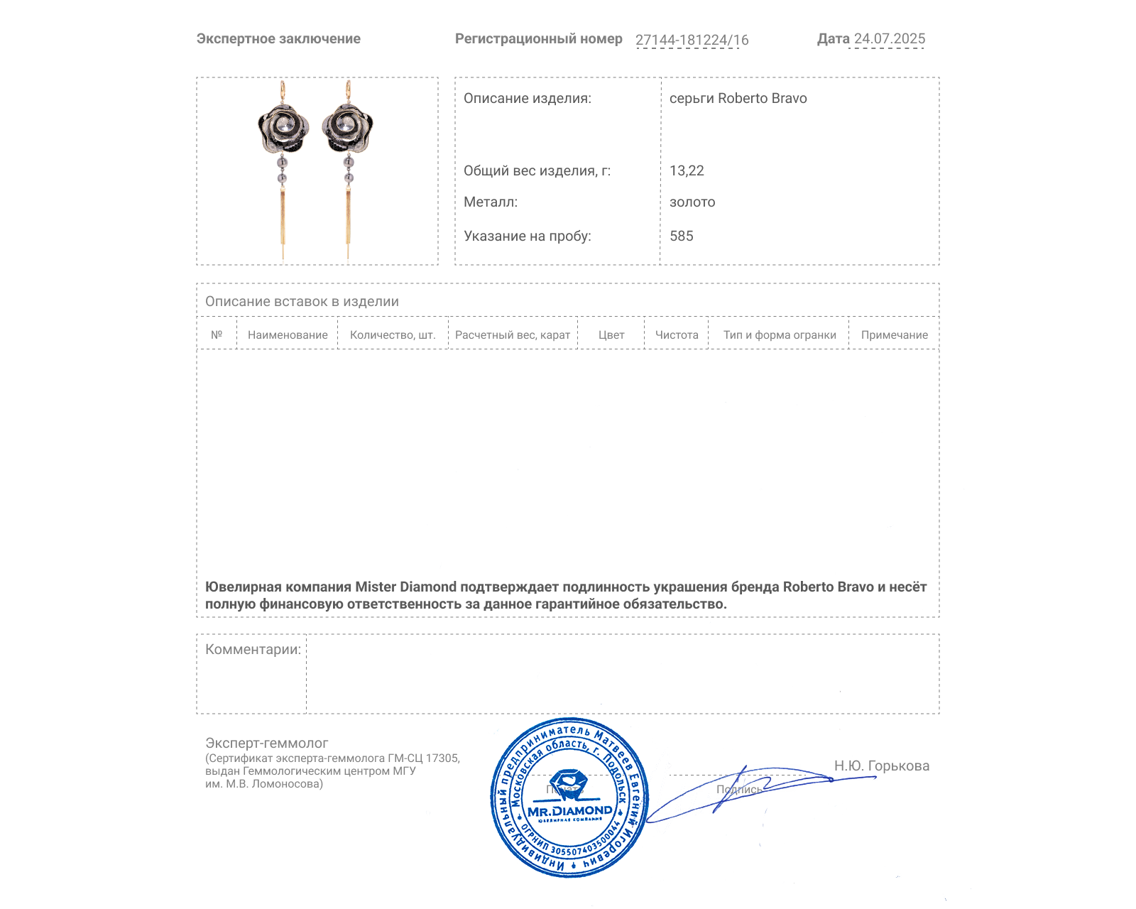 Представляем вашему вниманию оригинальные золотые серьги от всемирно известного бренда Roberto Bravo из коллекции Soul Dance.