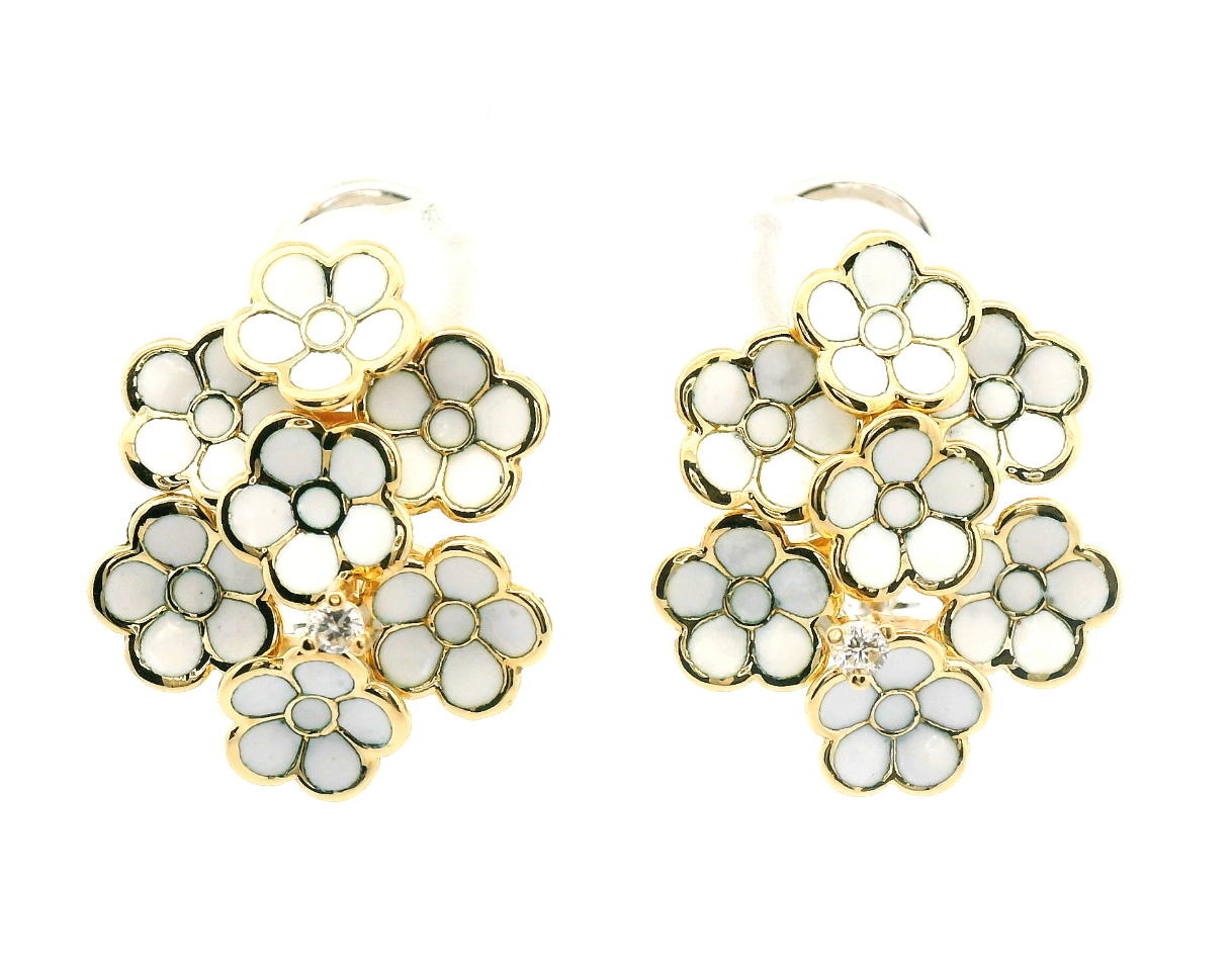 Представляем вашему вниманию оригинальные золотые серьги с эмалью и бриллиантами 0.06ct от всемирно известного бренда Roberto Bravo из коллекции White Dreams.