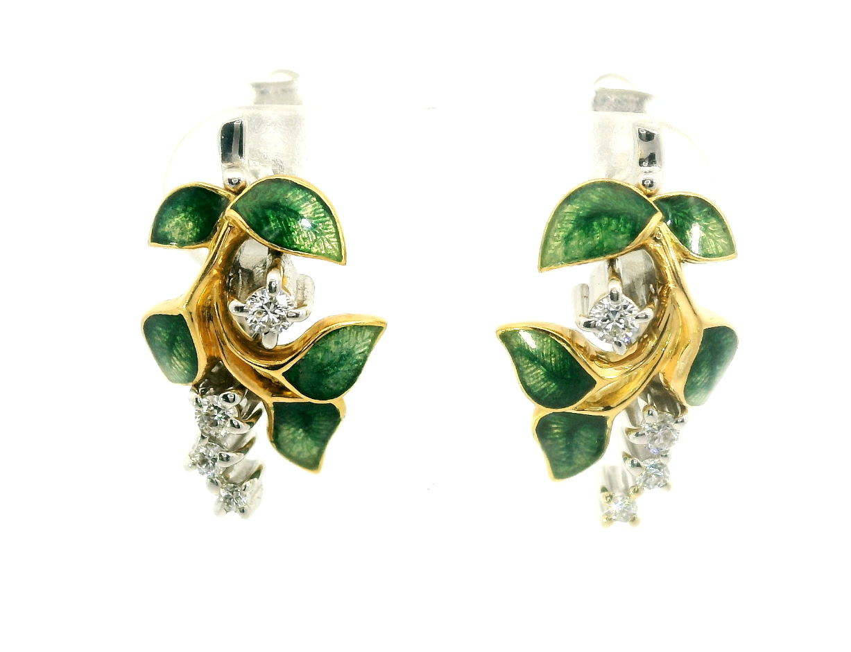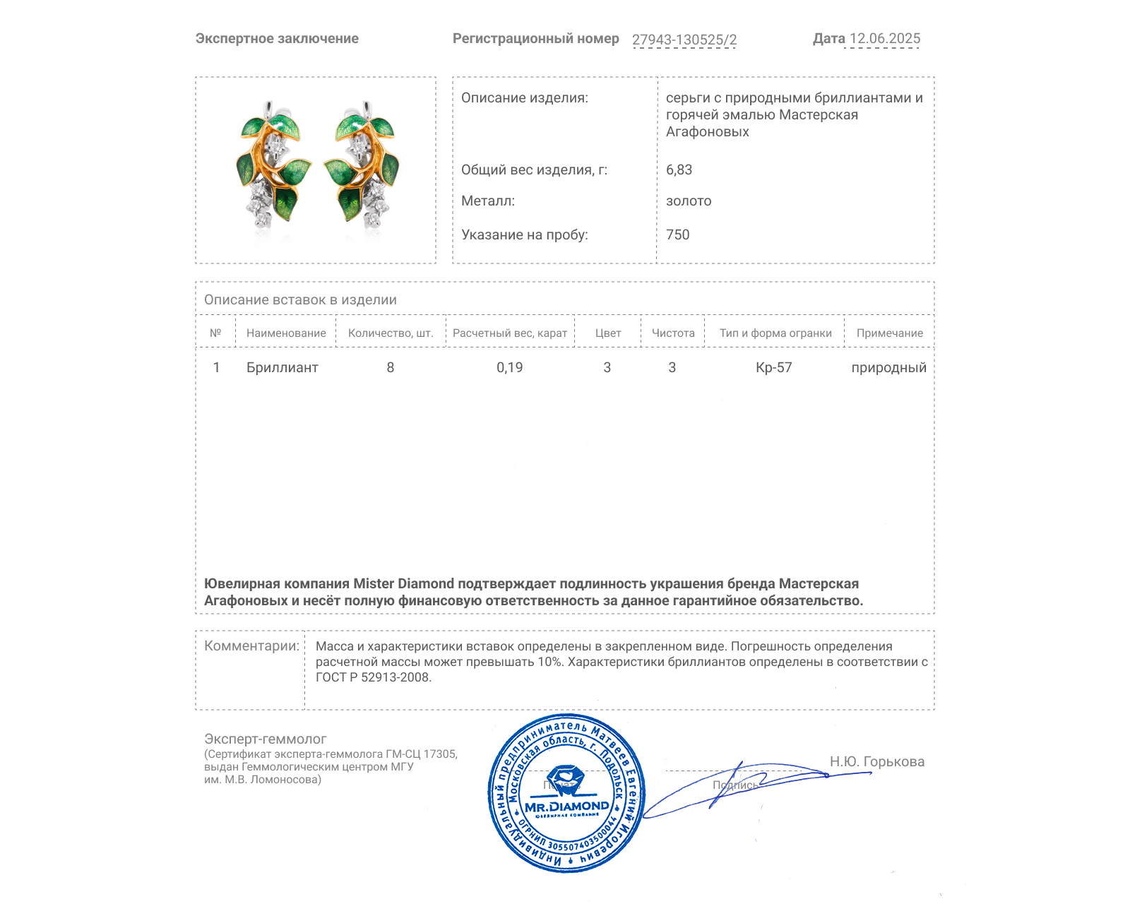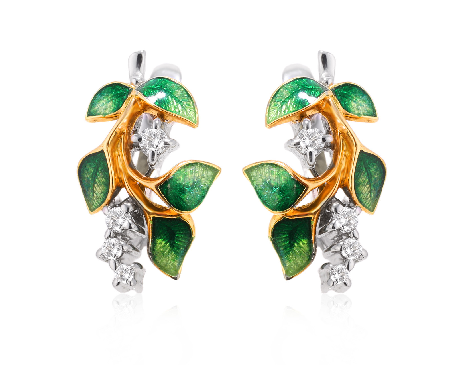 Представляем вашему вниманию оригинальные золотые серьги с бриллиантами 0.19ct и горячей эмалью от известной Мастерской Агафоновых.