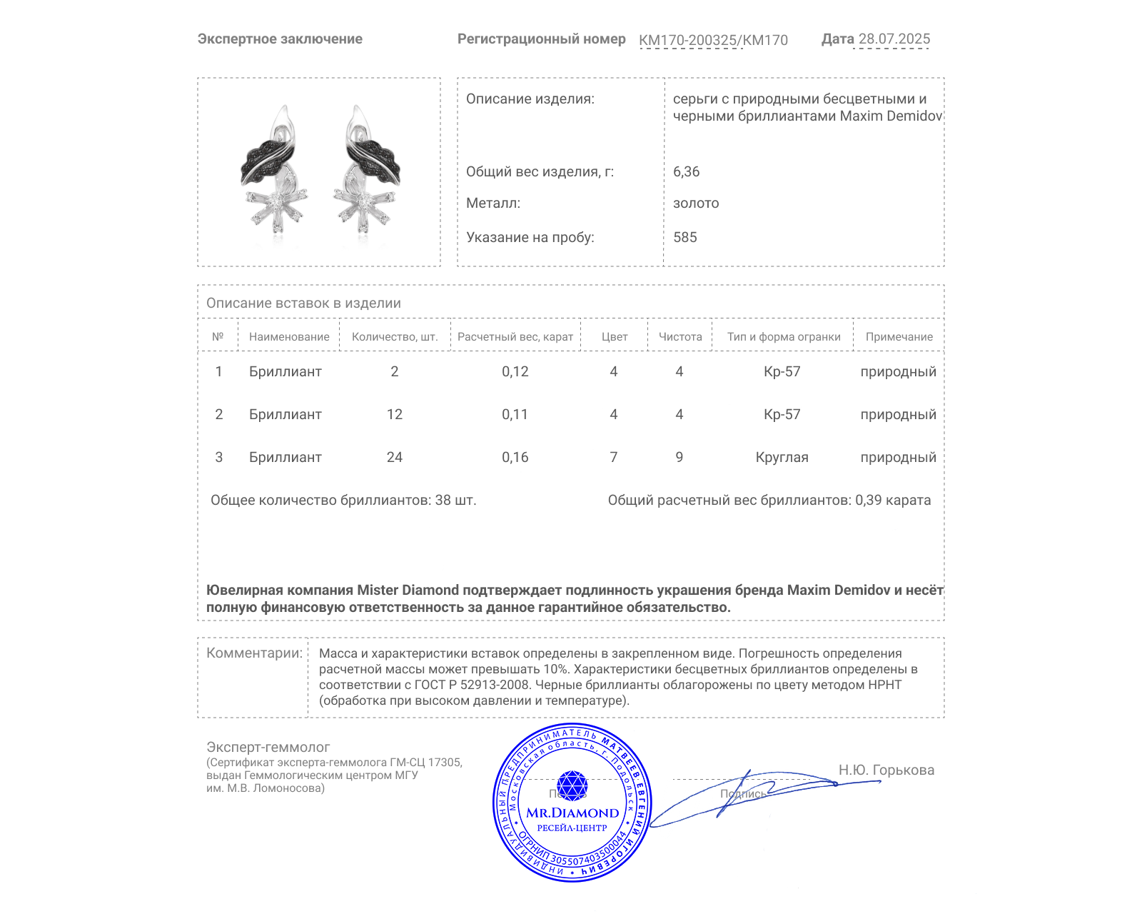 Представляем вашему вниманию оригинальные золотые серьги с бесцветными 0.23ct и черными 0.16ct бриллиантами от всемирно известного бренда Maxim Demidov.