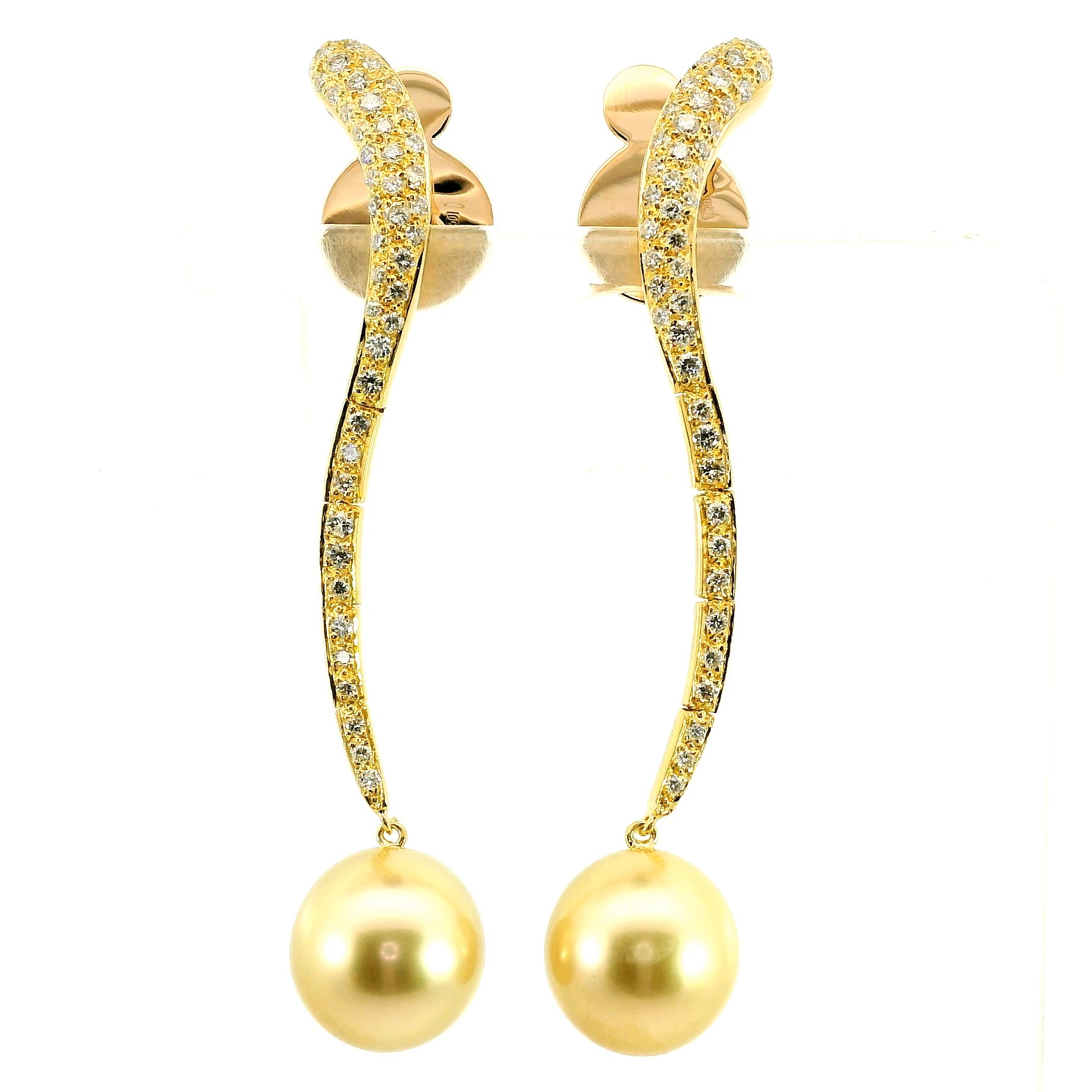 Представляем вашему вниманию оригинальные золотые серьги с бриллиантами 0.92ct и золотистым жемчугом 11.20 мм от всемирно известного бренда JIC.