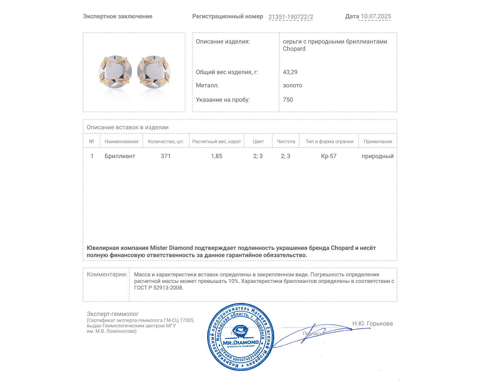 Представляем вашему вниманию оригинальные золотые серьги с бриллиантами 1.85ct от всемирно известного бренда Chopard.