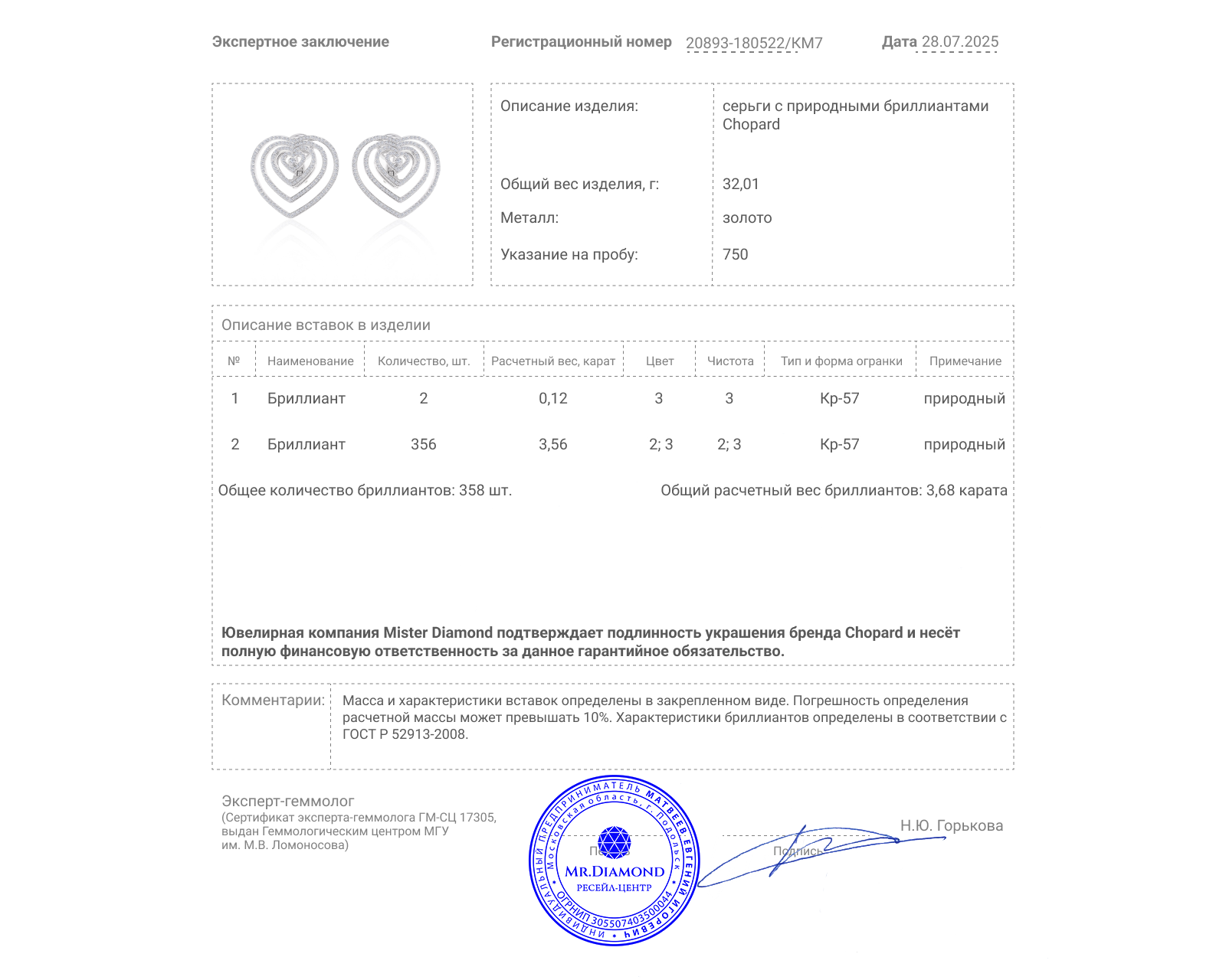 Представляем вашему вниманию оригинальные золотые серьги с бриллиантами 3.68ct от всемирно известного бренда Chopard из коллекции Heart.
