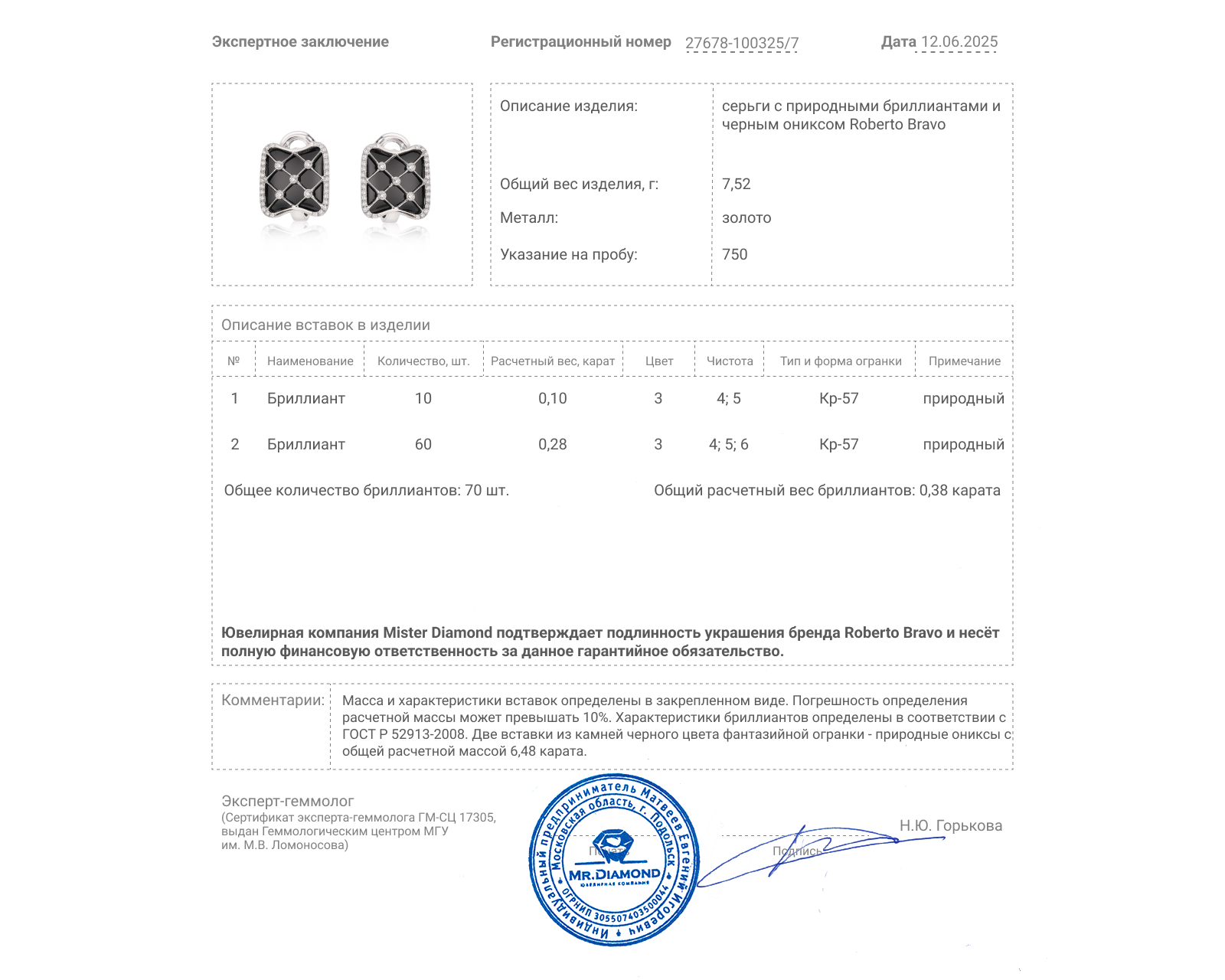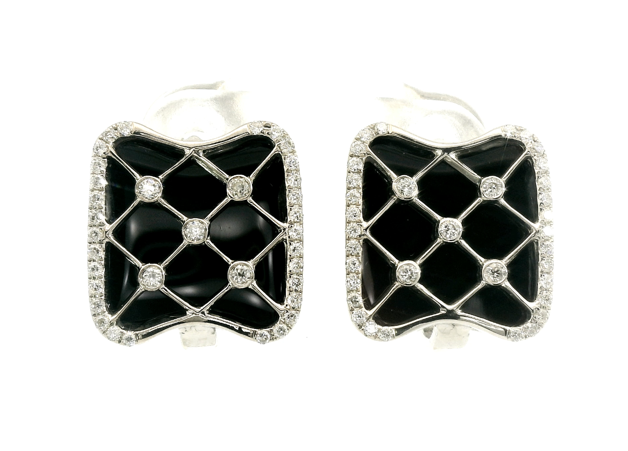Представляем вашему вниманию оригинальные золотые серьги с черным ониксом 6.48ct и бриллиантами 0.38ct от всемирно известного бренда Roberto Bravo.