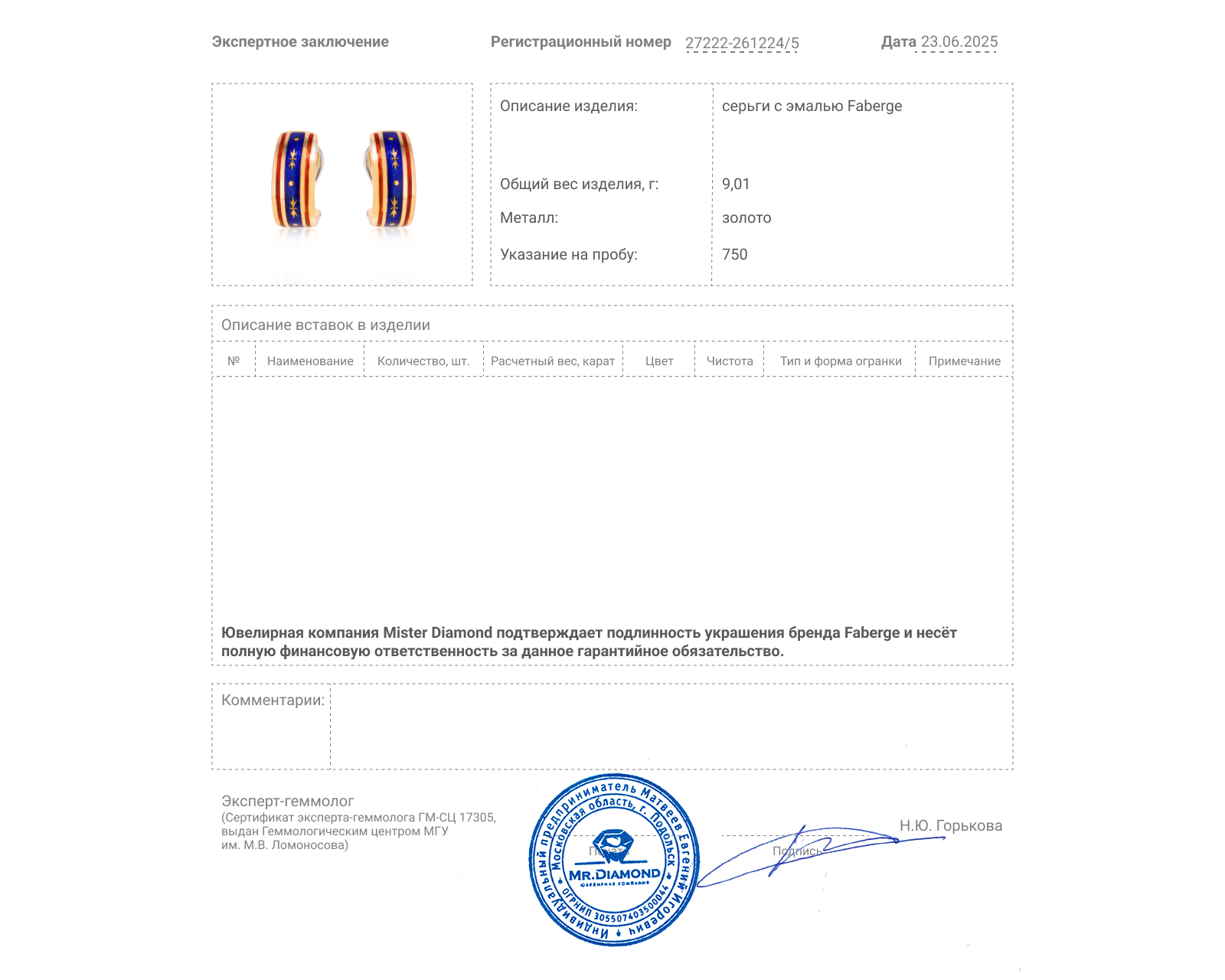 Представляем вашему вниманию оригинальные золотые серьги с эмалью от всемирно известного бренда Faberge.