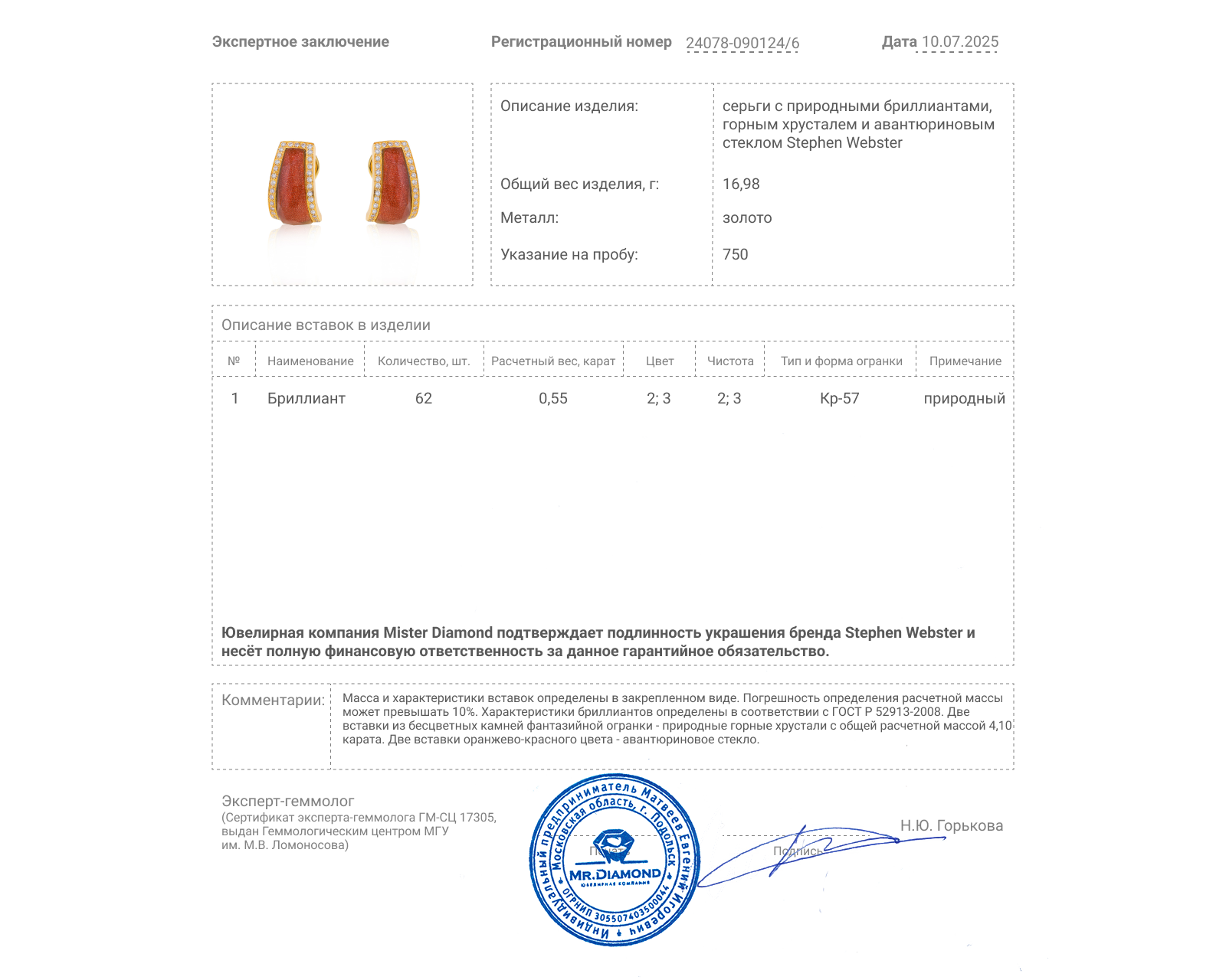Представляем вашему вниманию оригинальные золотые серьги с горным хрусталем 4.10ct, авантюриновым стеклом и бриллиантами 0.55ct от всемирно известного бренда Stephen Webster из коллекции Crystal Haze.