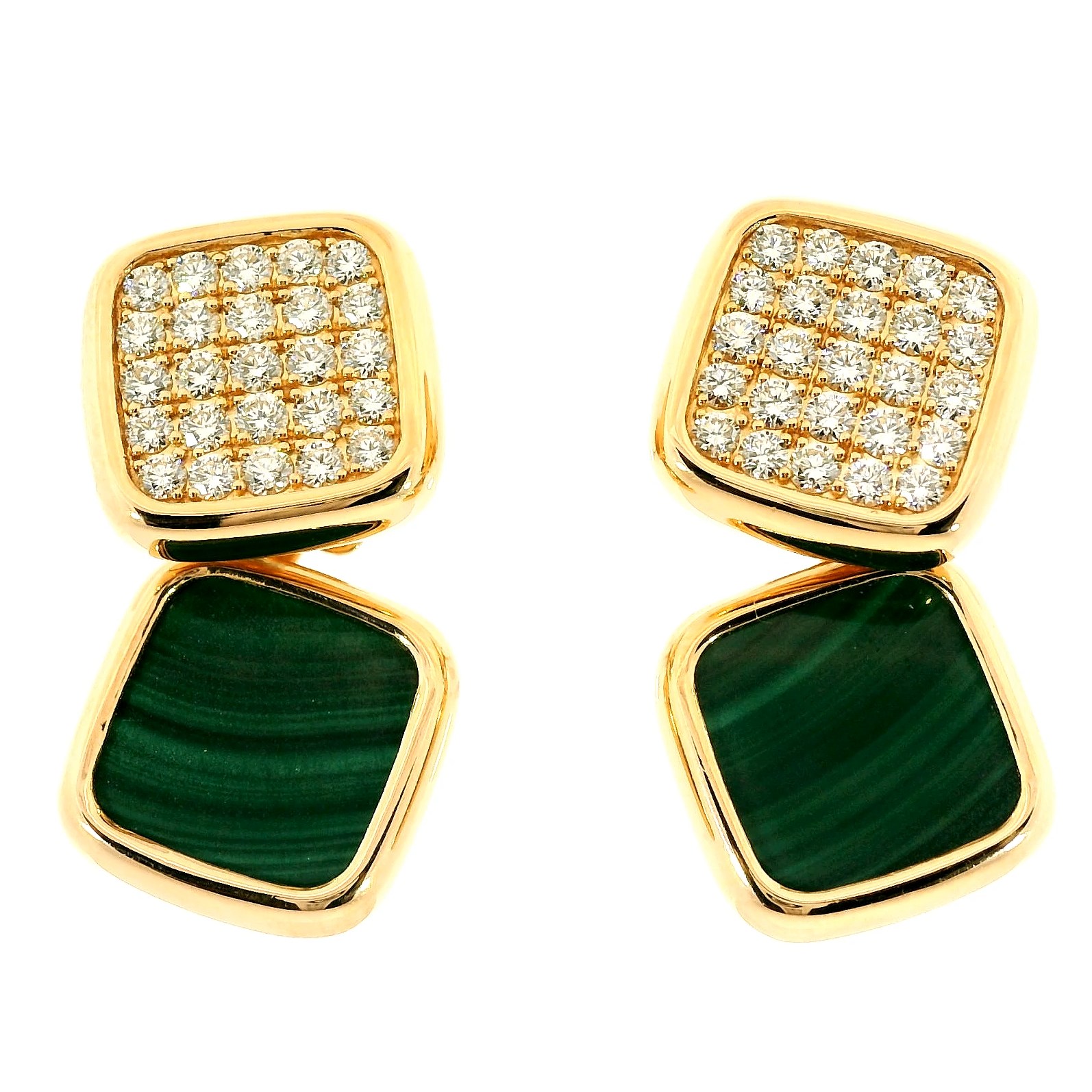 Представляем вашему вниманию оригинальные золотые серьги с малахитом 4.40ct, бриллиантами 0.90ct и рубинами 0.02ct от всемирно известного бренда Roberto Coin.