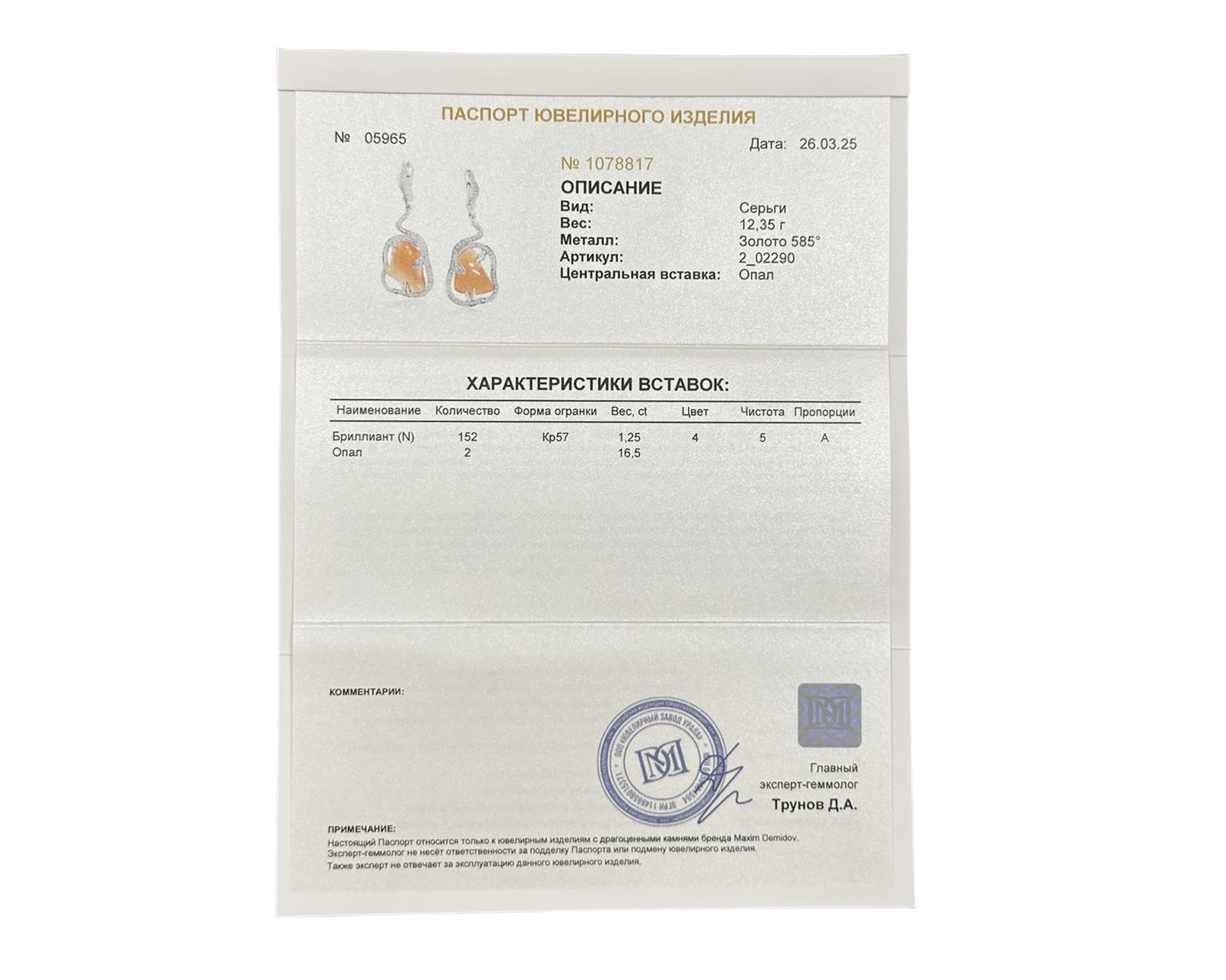 Представляем вашему вниманию оригинальные золотые серьги с опалами 16.50ct и бриллиантами 1.25ct от всемирно известного бренда Maxim Demidov.