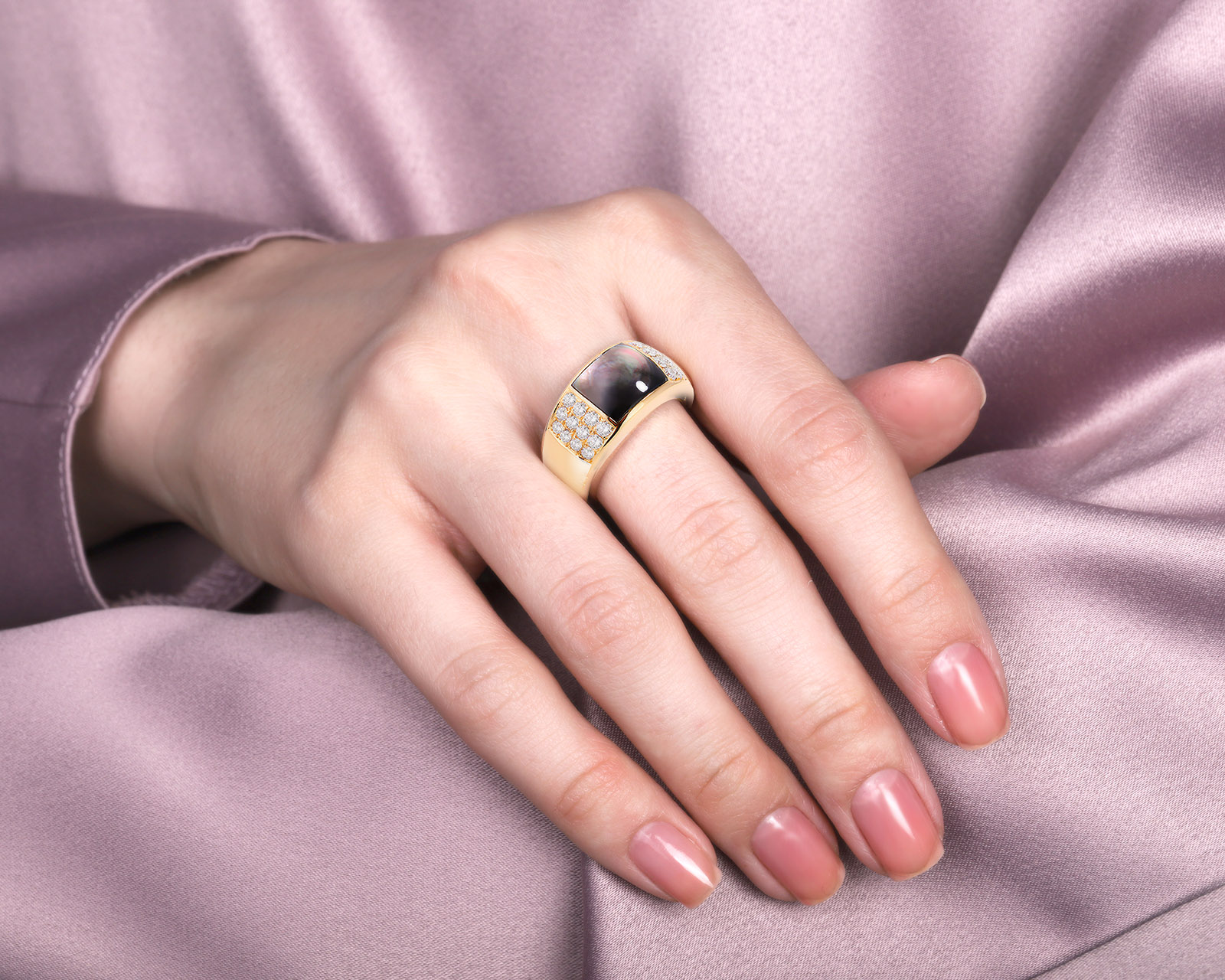 Оригинальное золотое кольцо с перламутром 1.10ct WZP Werner Zappe Pforzheim 201025/13