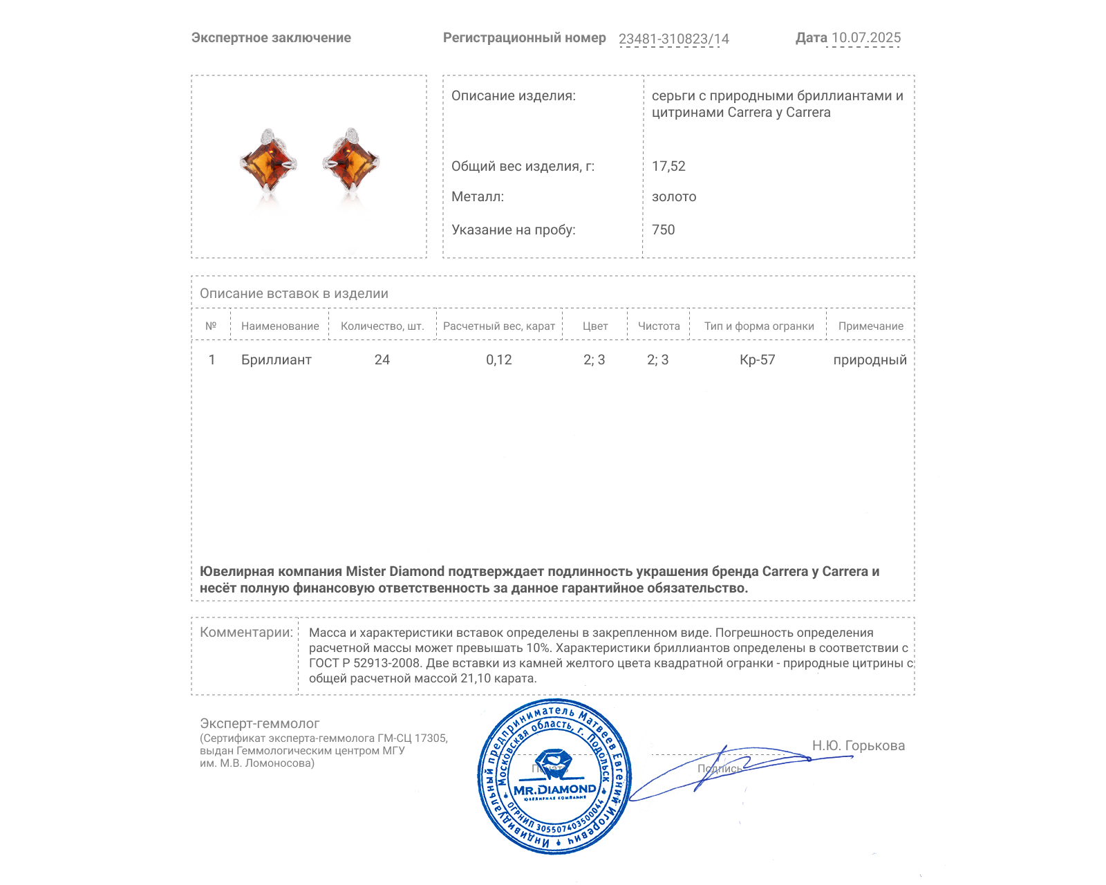 Представляем вашему вниманию оригинальные золотые серьги с цитринами 21.10ct и бриллиантами 0.12ct от всемирно известного бренда Carrera y Carrera из коллекции Jazmin.