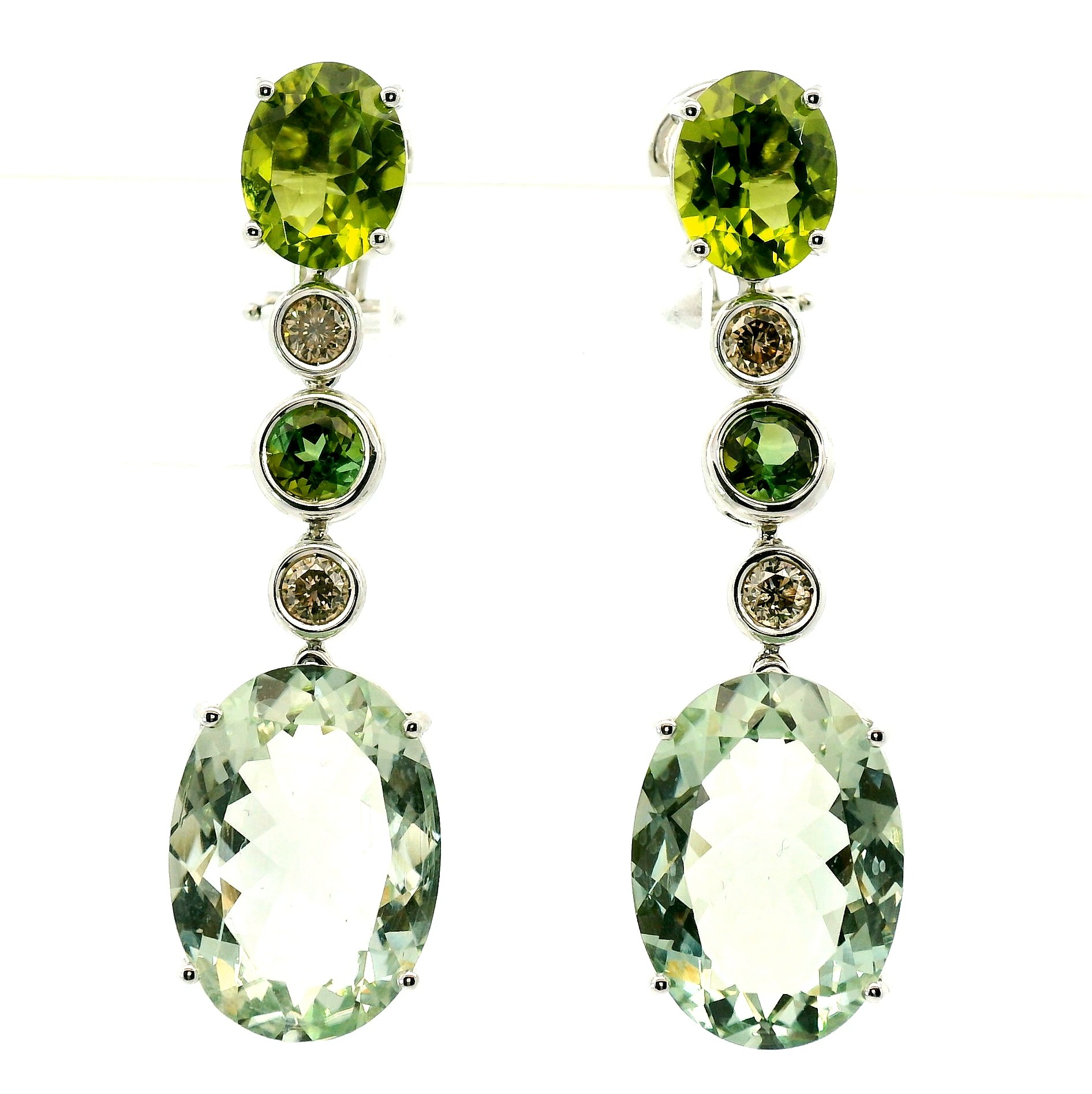 Представляем вашему вниманию оригинальные золотые серьги с празиолитами 16.80ct, хризолитами 4.50ct, турмалинами 0.60ct и бриллиантами 0.56ct от всемирно известного бренда Mangiorotti.