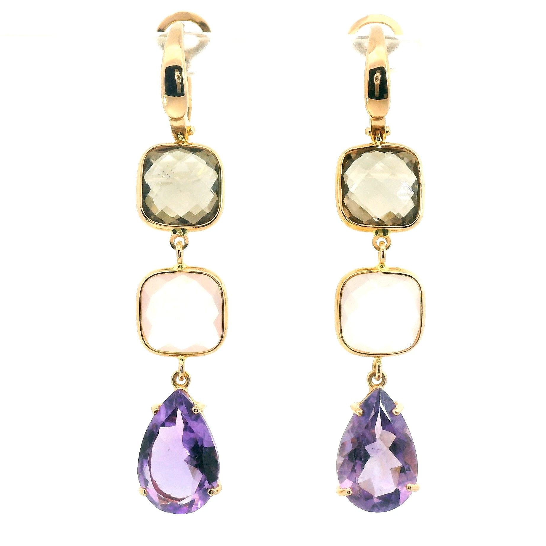 Представляем вашему вниманию оригинальные золотые серьги с дымчатыми 2.60ct и розовыми 2.80ct кварцами и аметистами 4.20ct от всемирно известного бренда Zoccai.