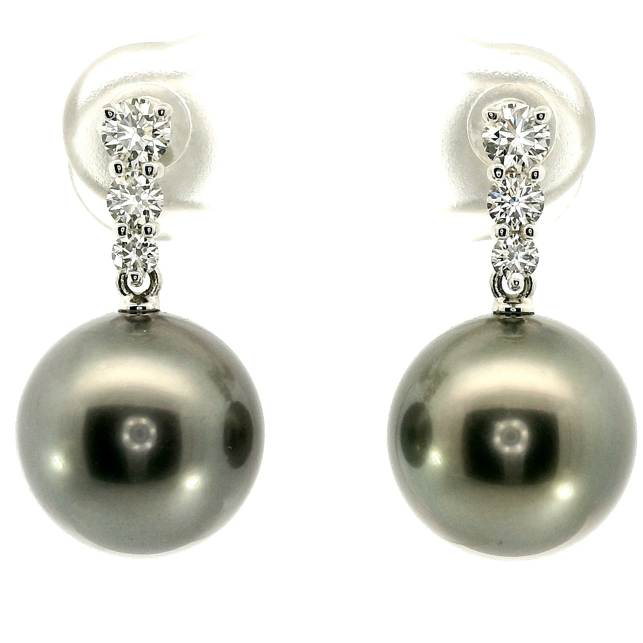 Представляем вашему вниманию оригинальные золотые серьги с черным жемчугом 11.50 мм и бриллиантами 0.42ct от всемирно известного бренда Mikimoto.