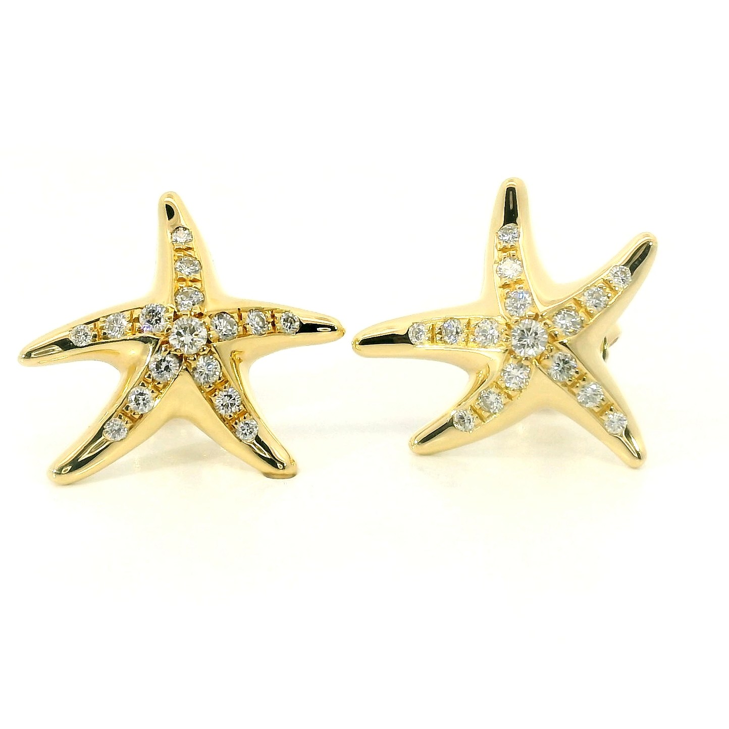Представляем вашему вниманию оригинальные золотые серьги с бриллиантами 0.30ct от всемирно известного бренда Tiffany&Co из коллекции Elsa Peretti Starfish.