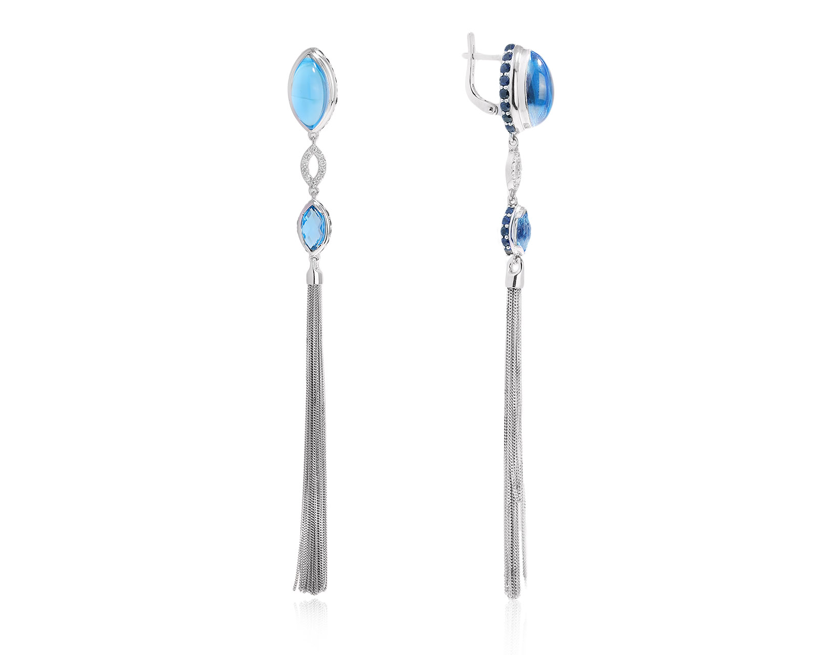 Золотые серьги с бриллиантами и топазами "London Blue" 040122/1