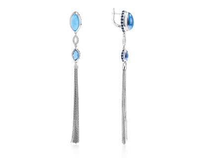 Золотые серьги с бриллиантами и топазами "London Blue" 040122/1
