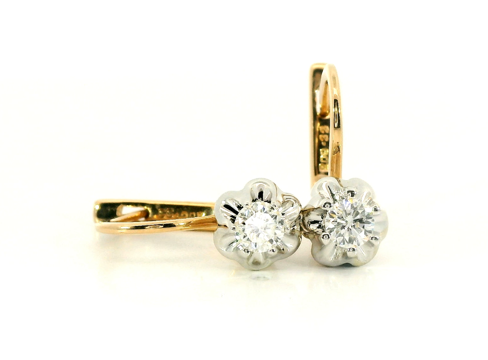 Золотые серьги с бриллиантами 0.27ct СССР 020624/13