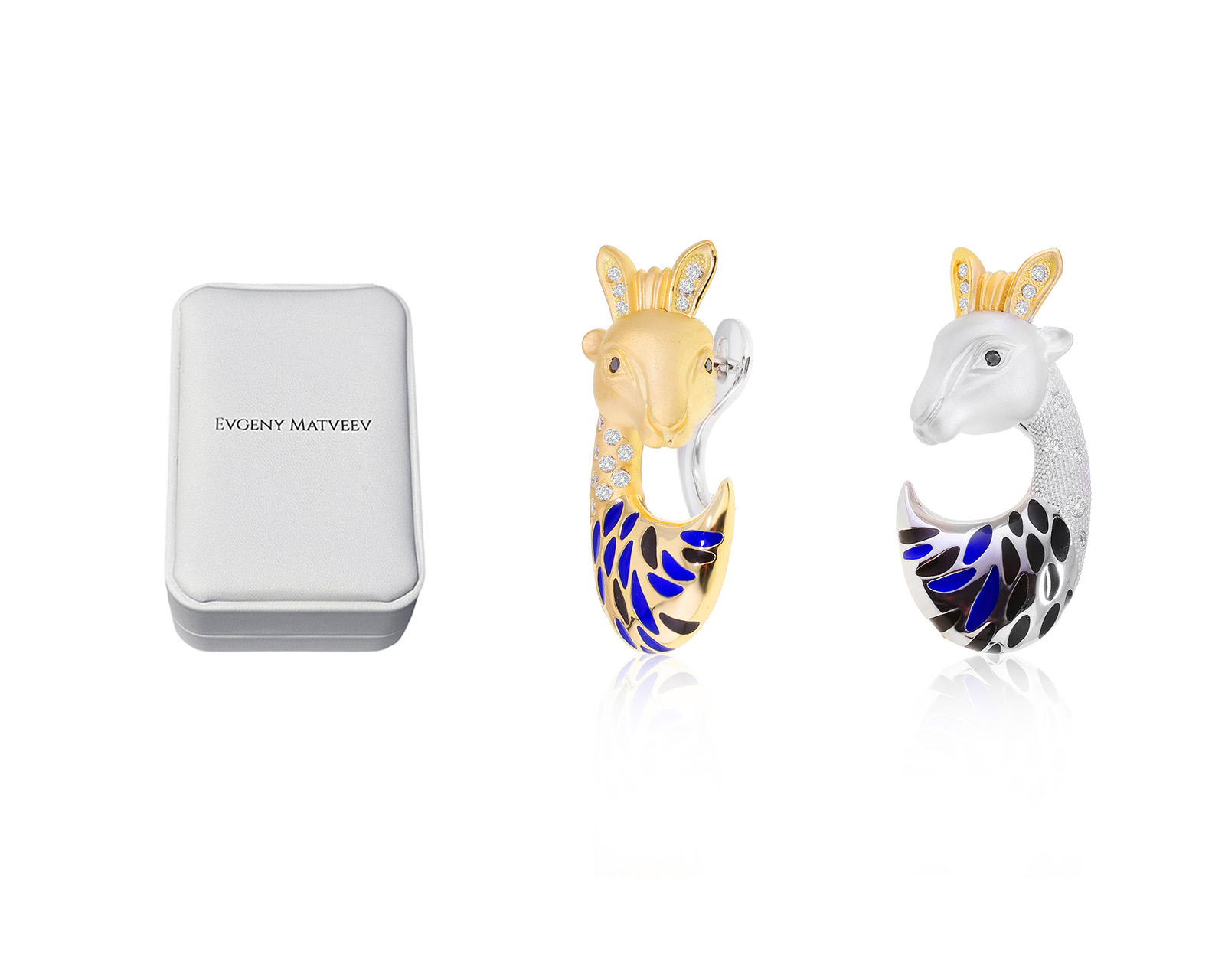 Представляем вашему вниманию золотые серьги с эмалью, бесцветными 0.44ct и черными 0.04ct бриллиантами.