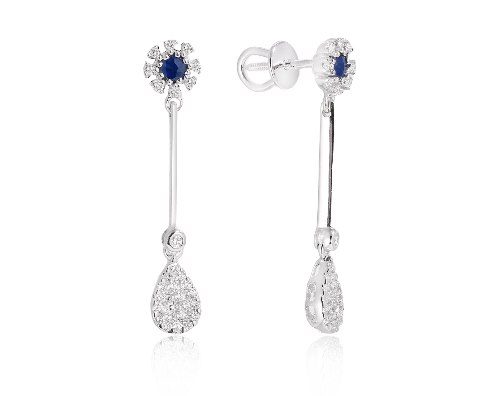 Золотые серьги с сапфирами 1.75ct и бриллиантами 0.10ct 180524/24