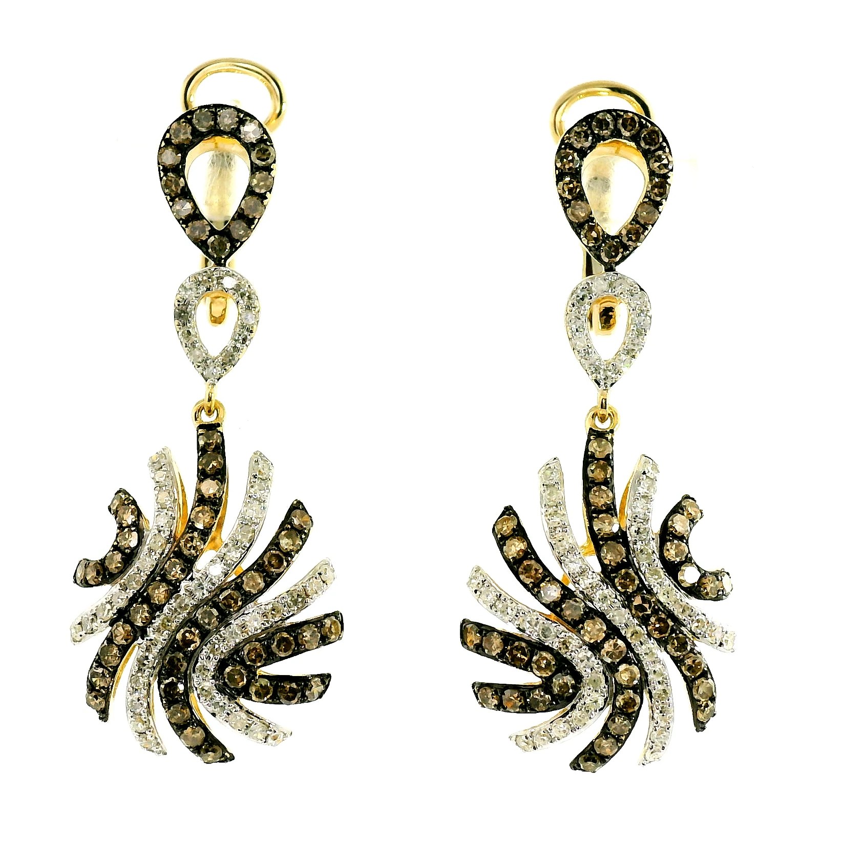 Представляем вашему вниманию золотые серьги с бесцветными 0.34ct и коньячными 0.72ct бриллиантами.