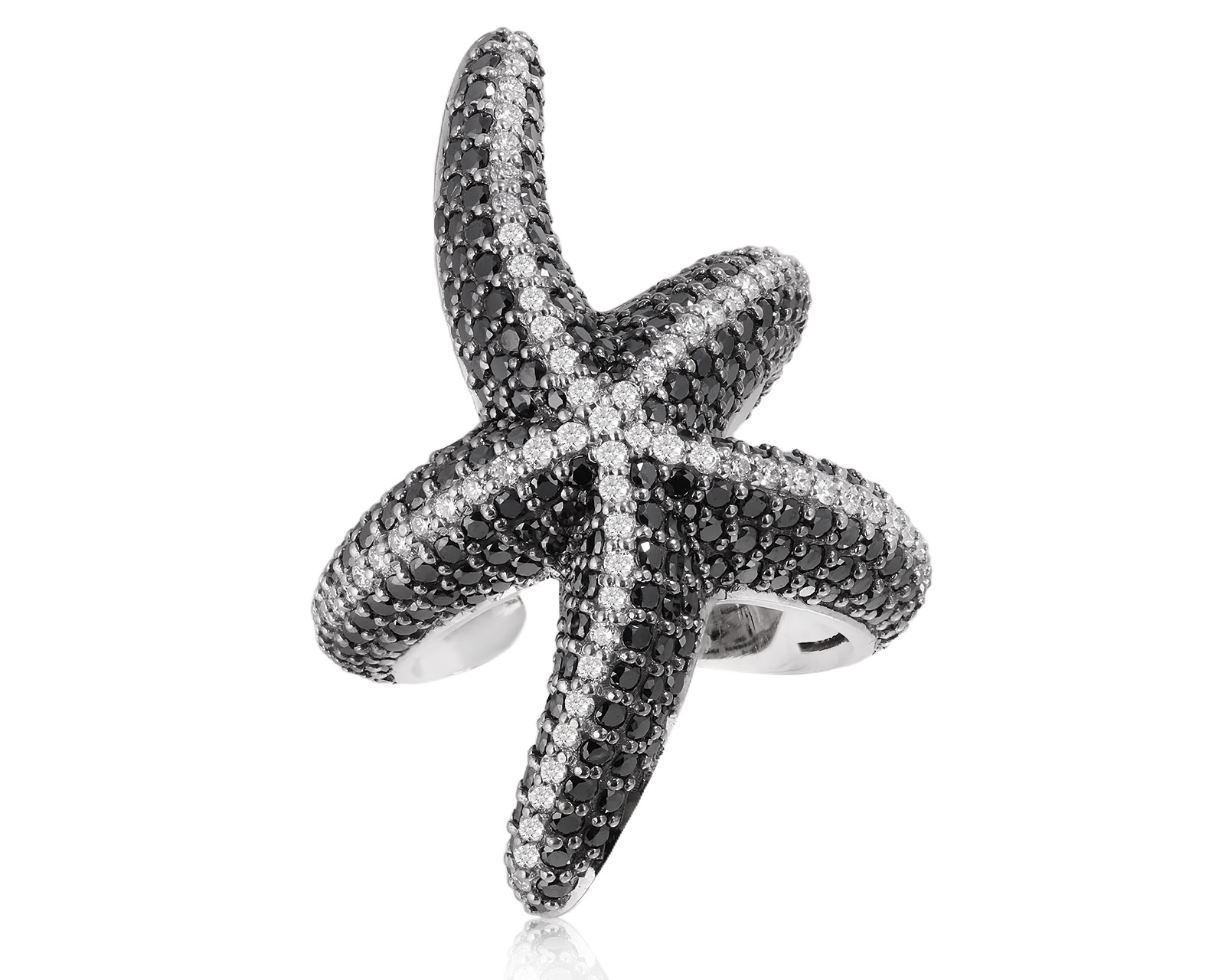 Золотое кольцо-печатка с черными и белыми бриллиантами 1.35ct 201218/12