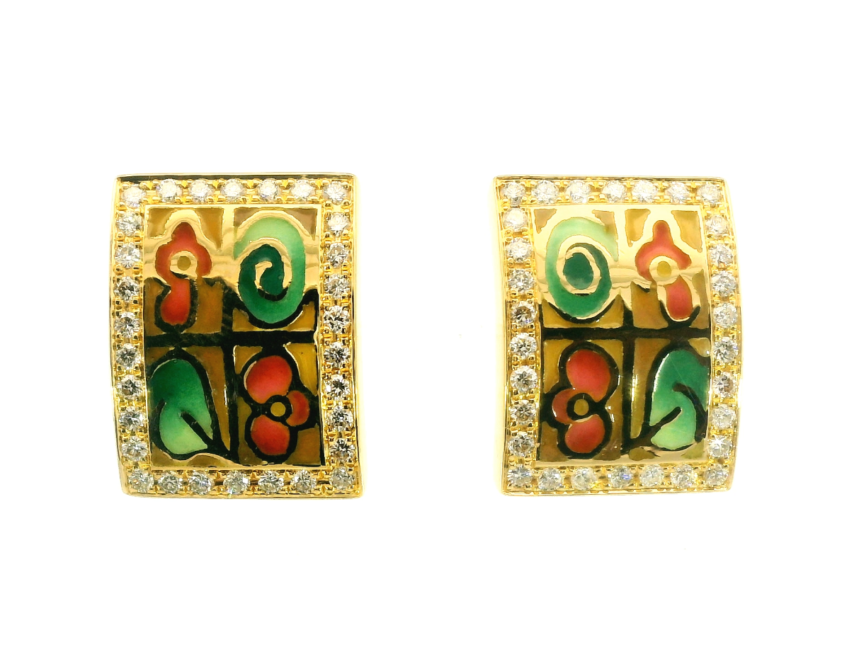 Представляем вашему вниманию золотые серьги с эмалью и бриллиантами 0.95ct.
