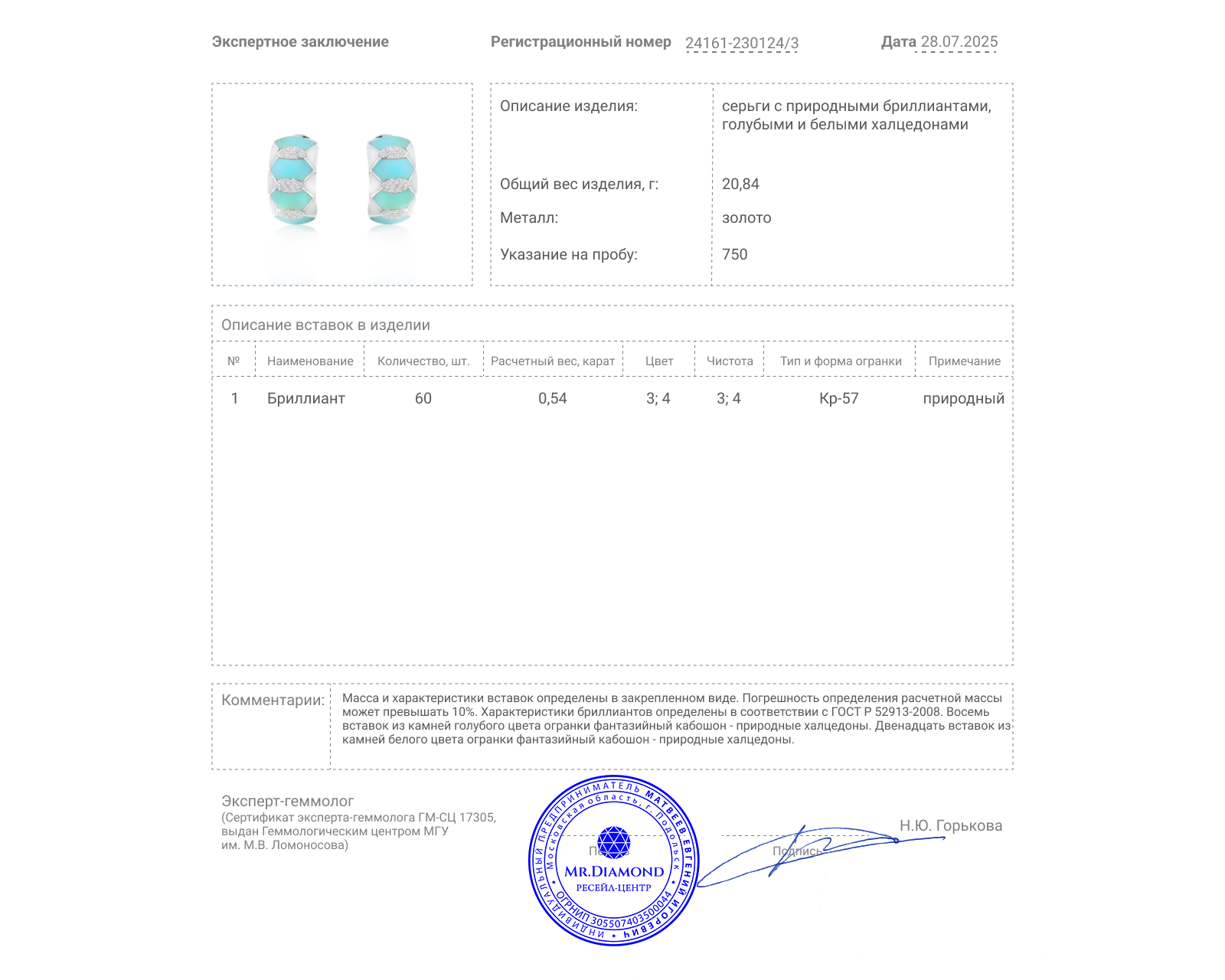 Представляем вашему вниманию оригинальные золотые серьги с голубыми и белыми халцедонами и бриллиантами 0.54ct от всемирно известного бренда Oro Trend.