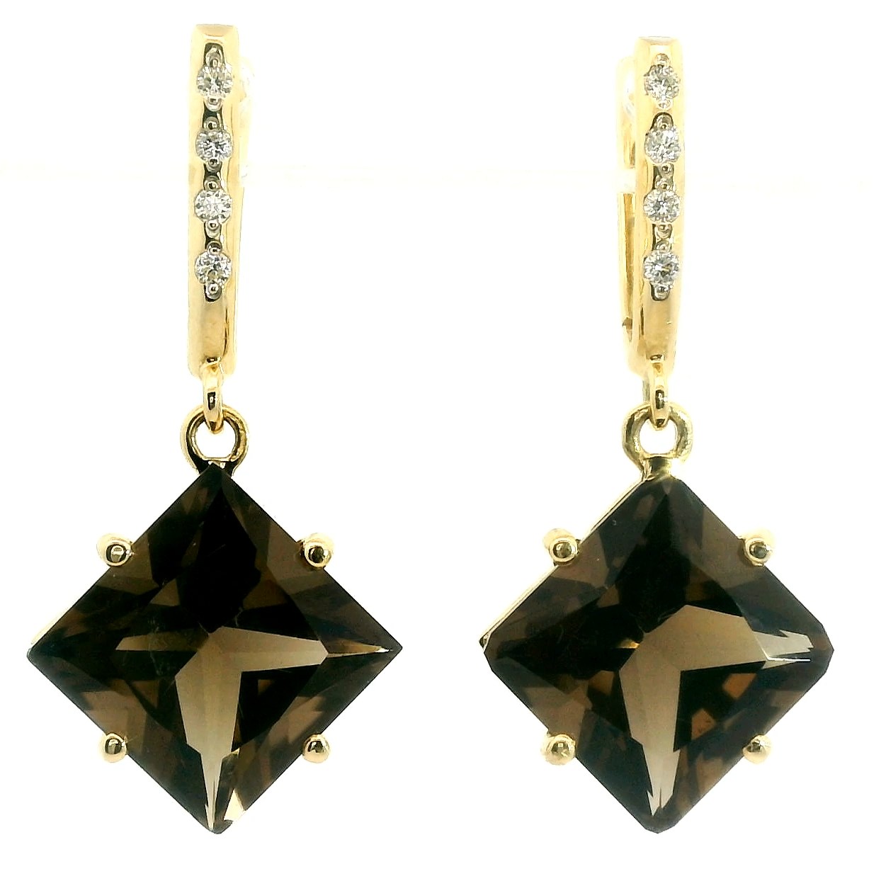 Представляем вашему вниманию золотые серьги с дымчатым кварцем 15.20ct и бриллиантами 0.10ct.