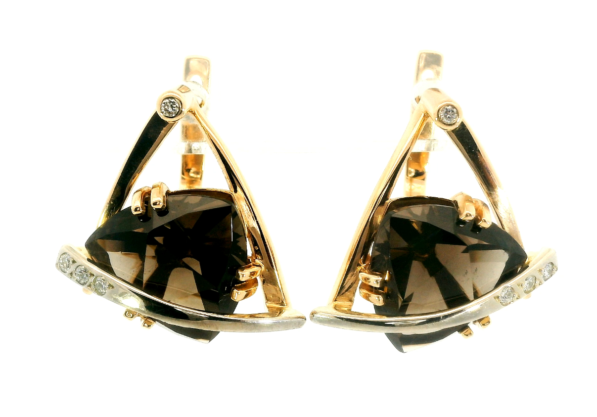 Представляем вашему вниманию золотые серьги с дымчатым кварцем 9.20ct и бриллиантами 0.11ct.