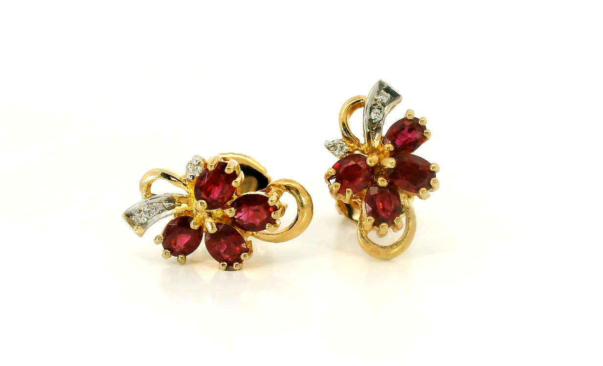 Представляем вашему вниманию золотые серьги с рубинами 0.60ct и бриллиантами 0.04ct.