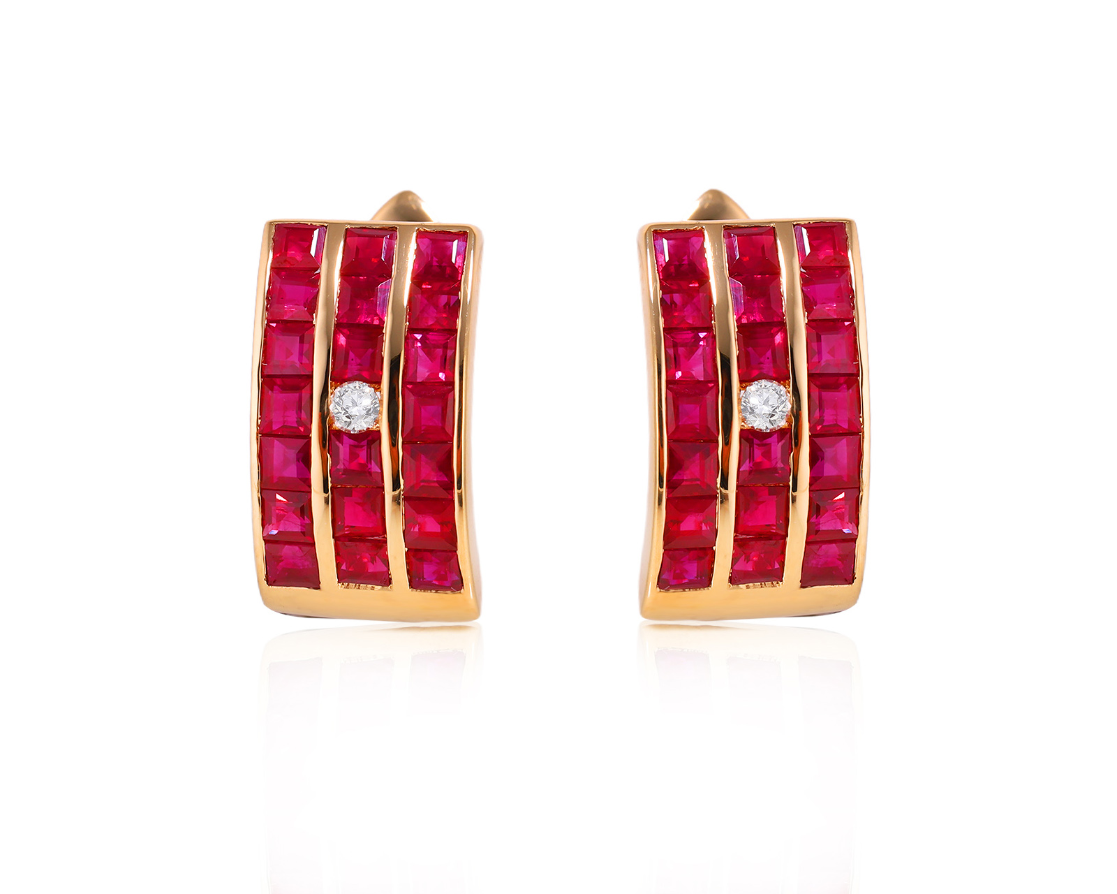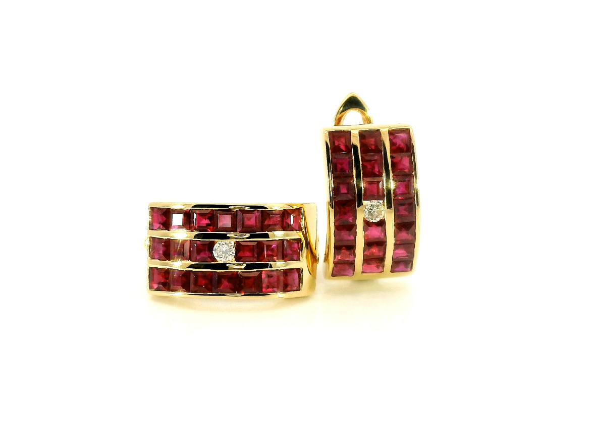 Золотые серьги с рубинами 3.24ct и бриллиантами 0.06ct 170524/15
