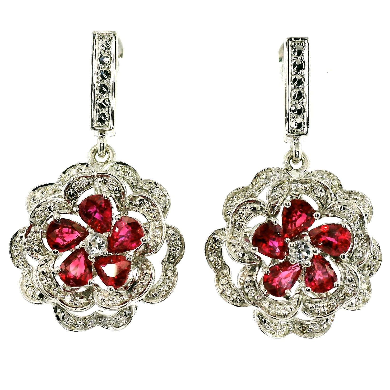 Представляем вашему вниманию золотые серьги с рубинами 2.60ct, топазами 0.18ct и бриллиантами 0.26ct.