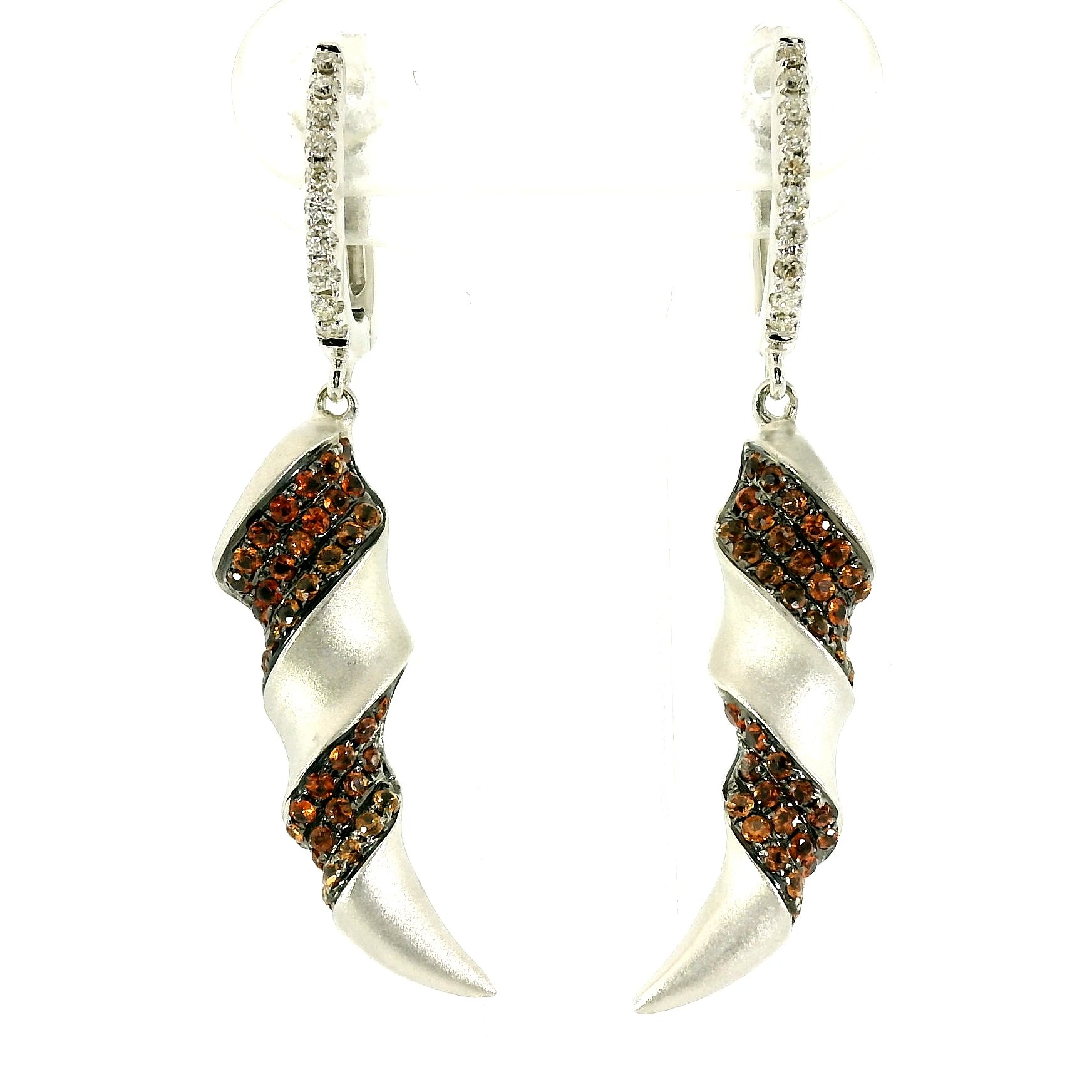 Представляем вашему вниманию золотые серьги с желтыми и оранжевыми сапфирами 0.58ct и бриллиантами 0.10ct.