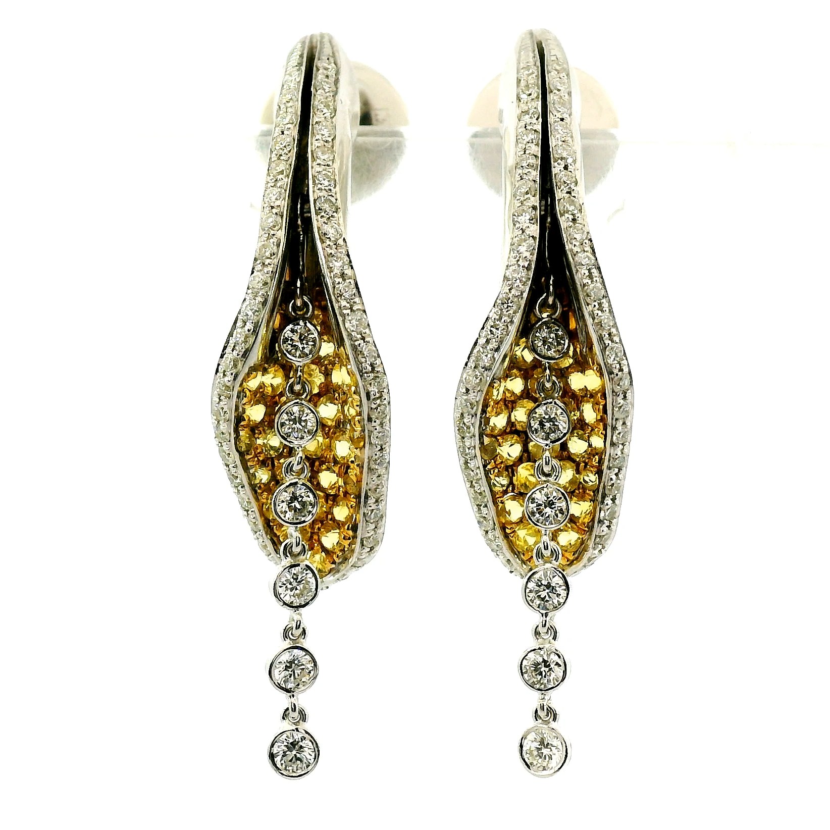 Представляем вашему вниманию золотые серьги с желтыми сапфирами 0.81ct и бриллиантами 0.70ct.