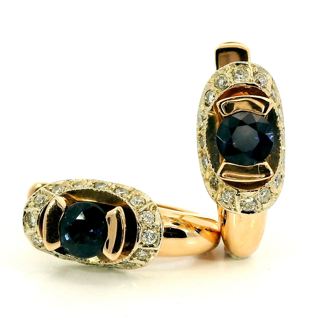 Представляем вашему вниманию золотые серьги с сапфирами 1.20ct и бриллиантами 0.38ct.