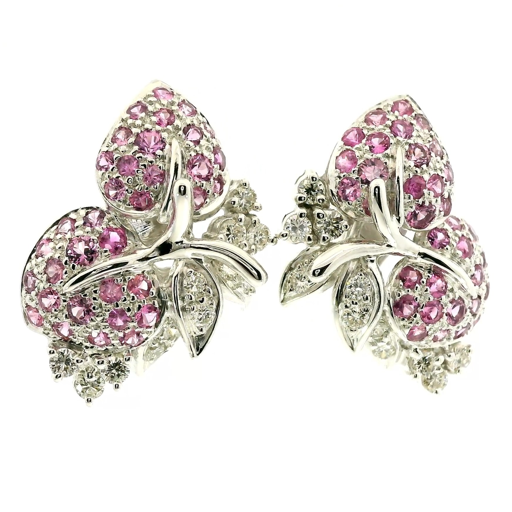 Представляем вашему вниманию золотые серьги с розовыми сапфирами 2.72ct и бриллиантами 0.96ct.