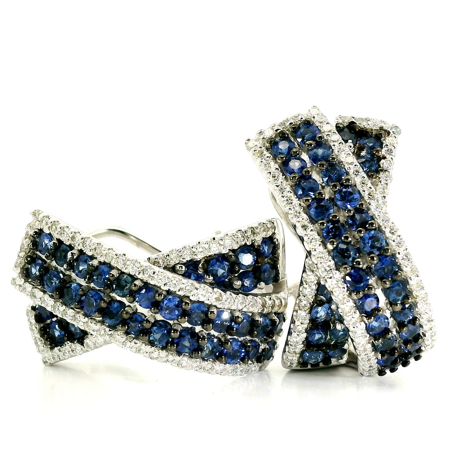 Представляем вашему вниманию золотые серьги с сапфирами 3.23ct и бриллиантами 0.11ct.