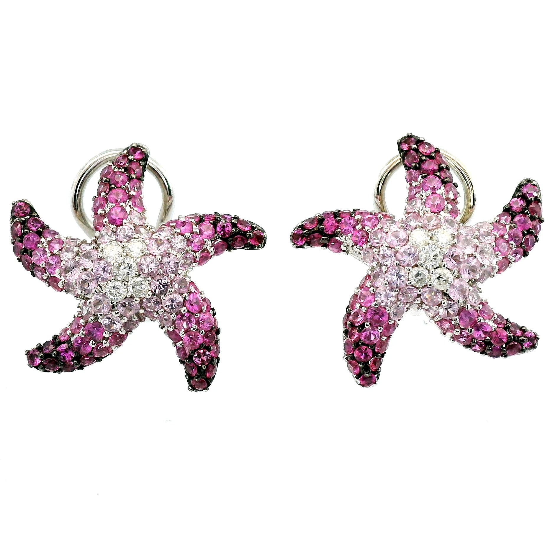 Представляем вашему вниманию золотые серьги с розовыми сапфирами 3.23ct и бриллиантами 0.21ct.