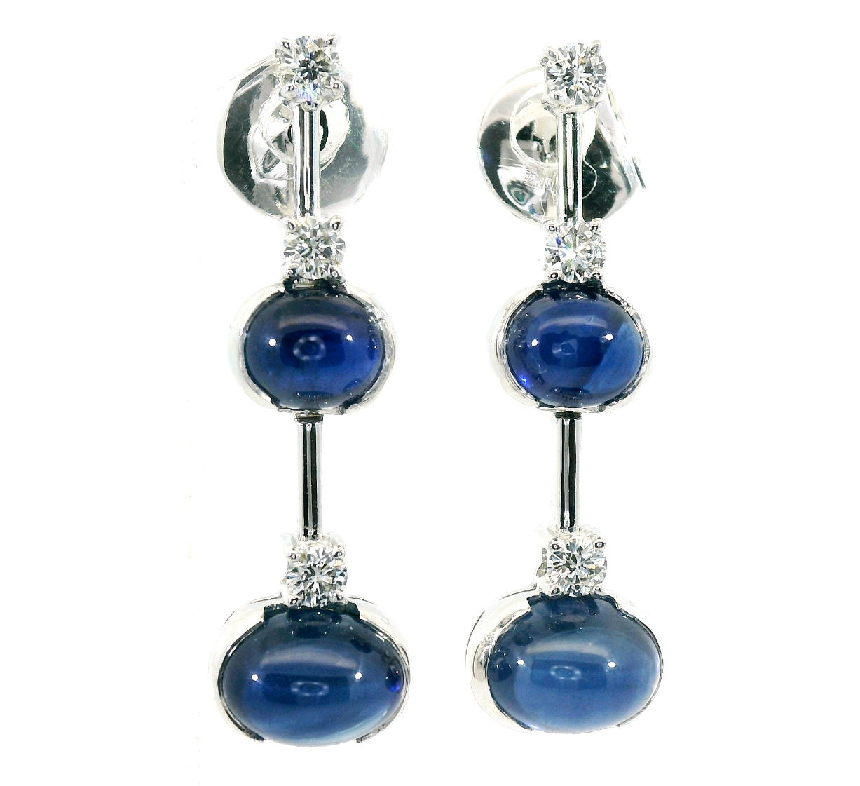 Представляем вашему вниманию золотые серьги с сапфирами 6.80ct и бриллиантами 0.36ct.