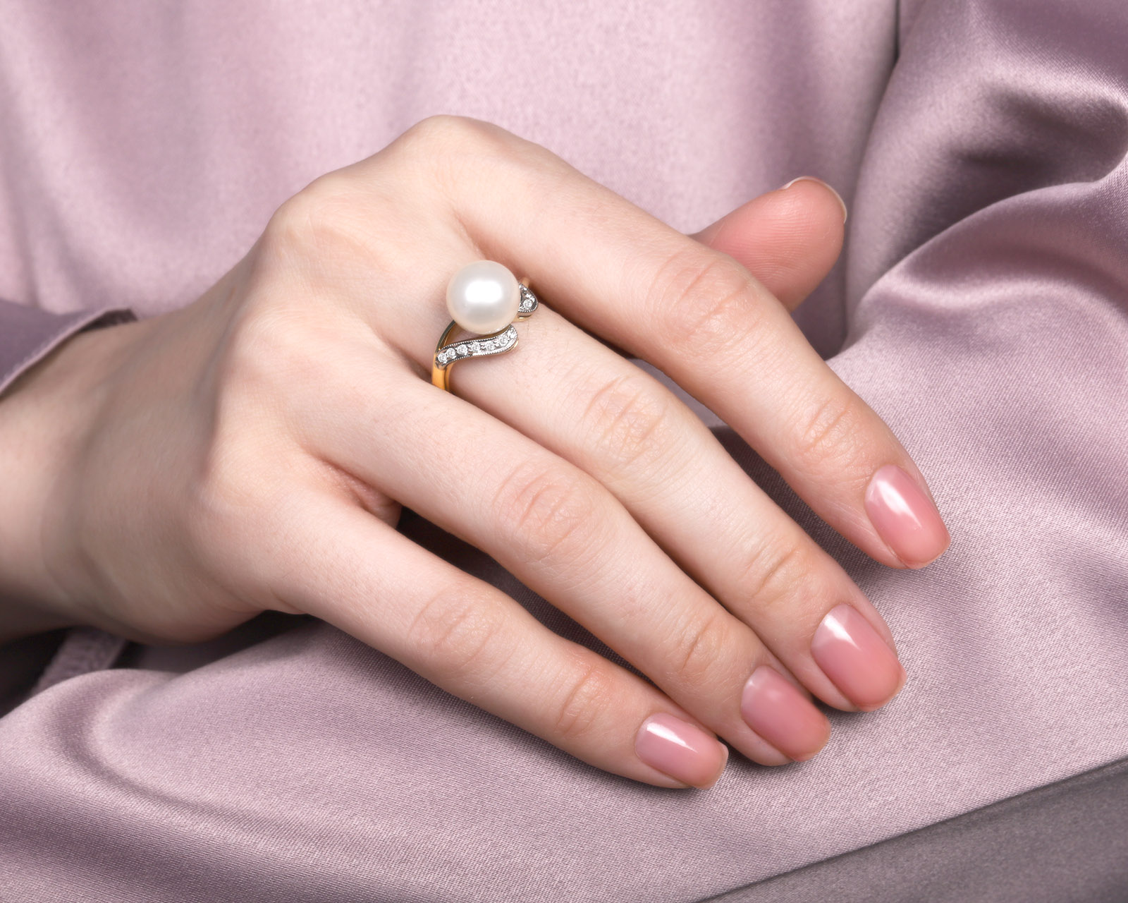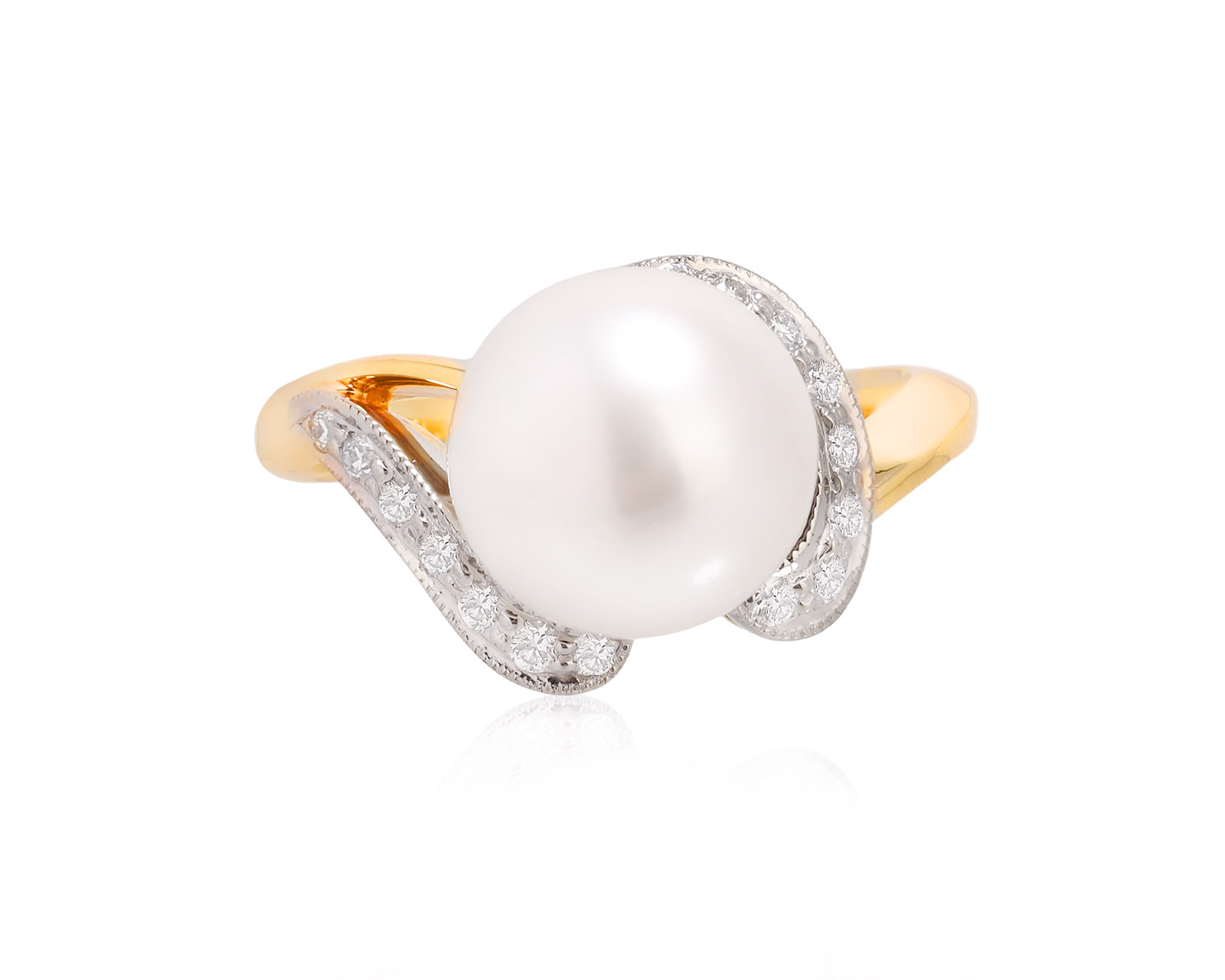 Золотое кольцо с жемчугом 10.45 мм и бриллиантами 0.18ct